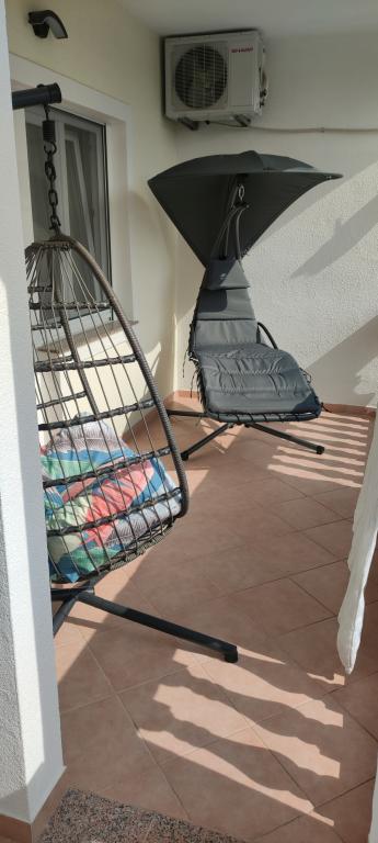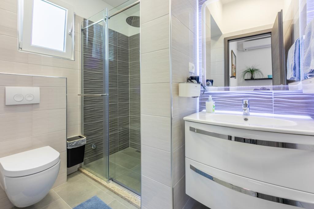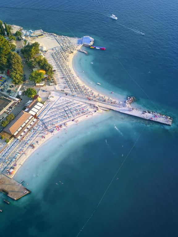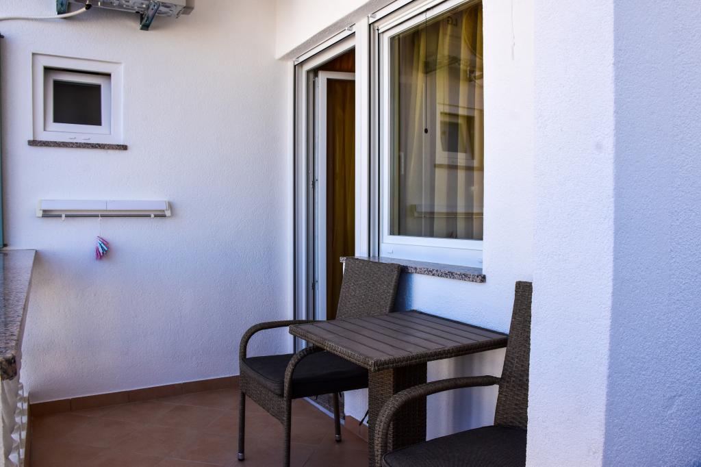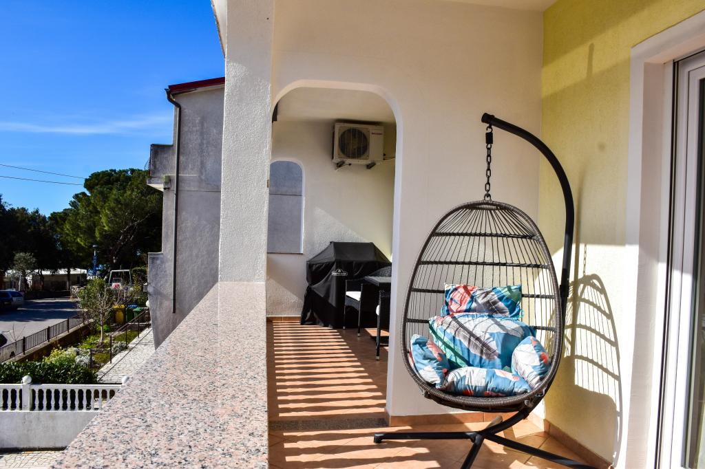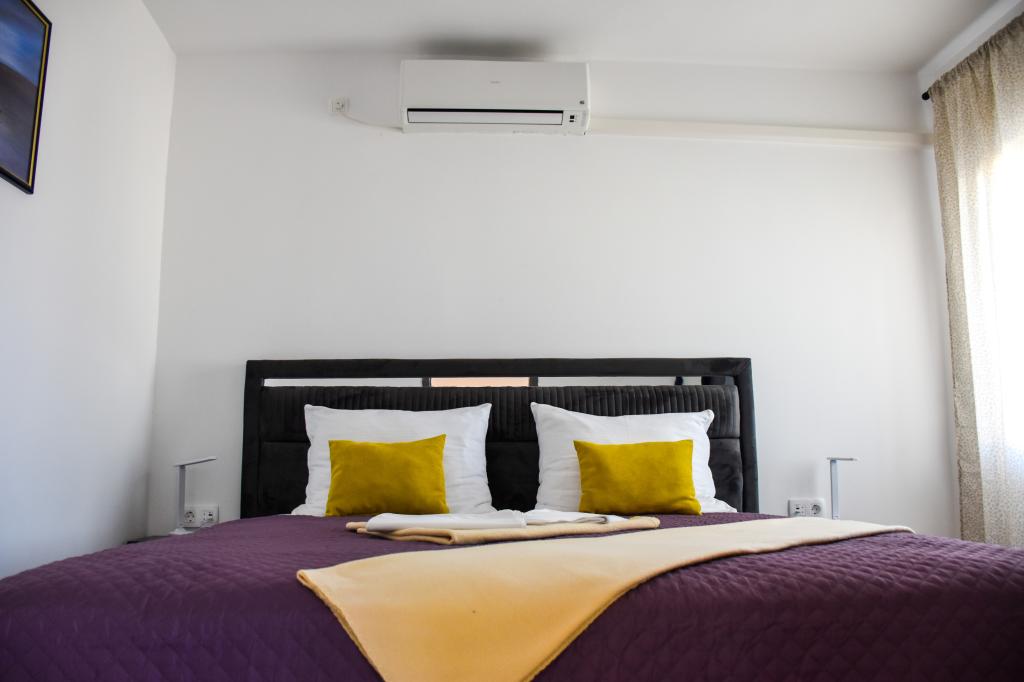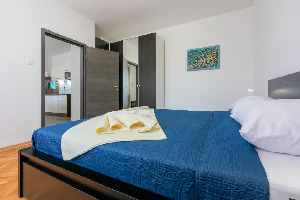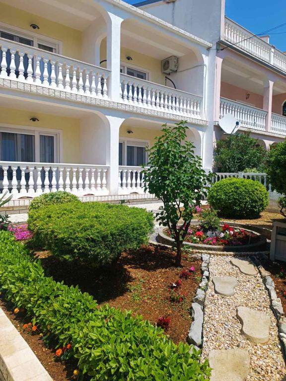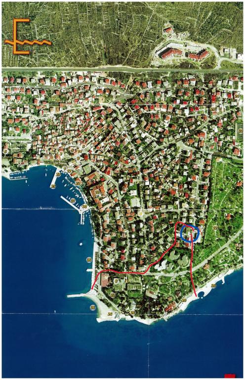De appartementen bevinden zich in een gezinswoning, op een paar minuten lopen van de zee en de boulevard met een aantal restaurants, cafés, sportfaciliteiten en winkels. Het appartement "Ema" (2+2) bestaat uit een tweepersoonskamer, een keuken met eetkamer waar een tweepersoonsslaapbank staat die kan worden uitgeklapt tot een tweepersoonsbed, een badkamer en een ruim terras met barbecue. Het tweede appartement "Gita" (2+1) heeft een tweepersoonsslaapkamer, een ruime keuken met eetkamer met slaapbank, een badkamer en een ruim terras.