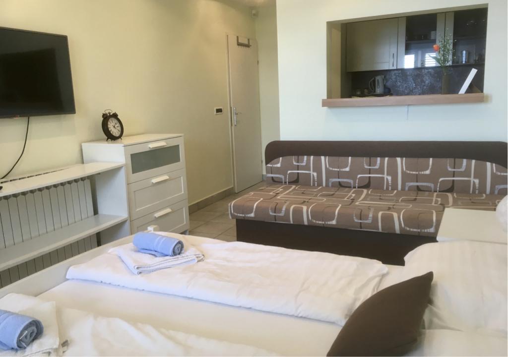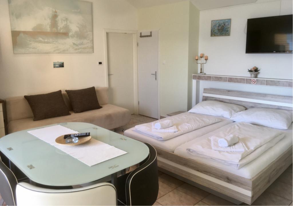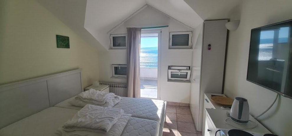 Het appartement is netjes, schoon en smaakvol ingericht en van alle gemakken voorzien. Er zijn ligstoelen, parasols, surfplanken, fietsen en een speelkamer voor de kinderen aanwezig... Naast de locatie (eerste rij aan zee) zijn we ook erg te spreken over de zeer vriendelijke gastvrouw Branka, die altijd voor de gasten klaarstaat. De onopvallende, vrolijke, goedbedoelende en hartelijke mevrouw Branka kan een voorbeeld zijn voor alle huurders van hoe een goede gastheer hoort te zijn. We raden het iedereen aan, jong en oud, en ook gezinnen met kinderen. Het bij de prijs inbegrepen ontbijt is gevarieerd en geschikt voor alle smaken.