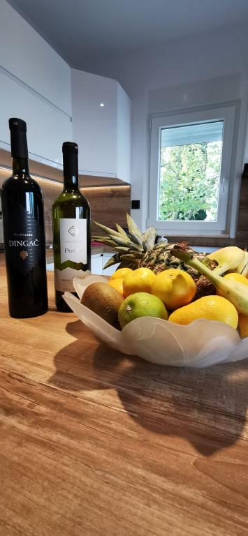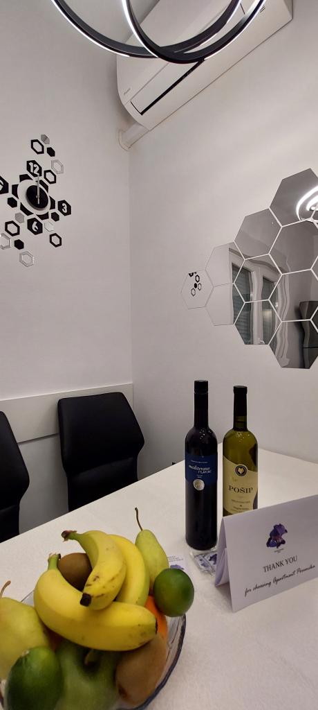 Een welkomstdrankje en fruit wachten op u in het appartement. Cosmetica in de badkamer bij de prijs inbegrepen.