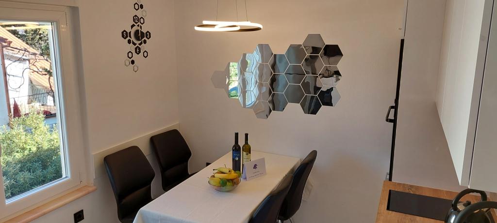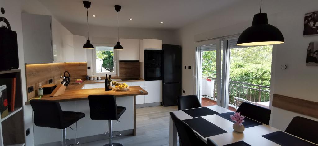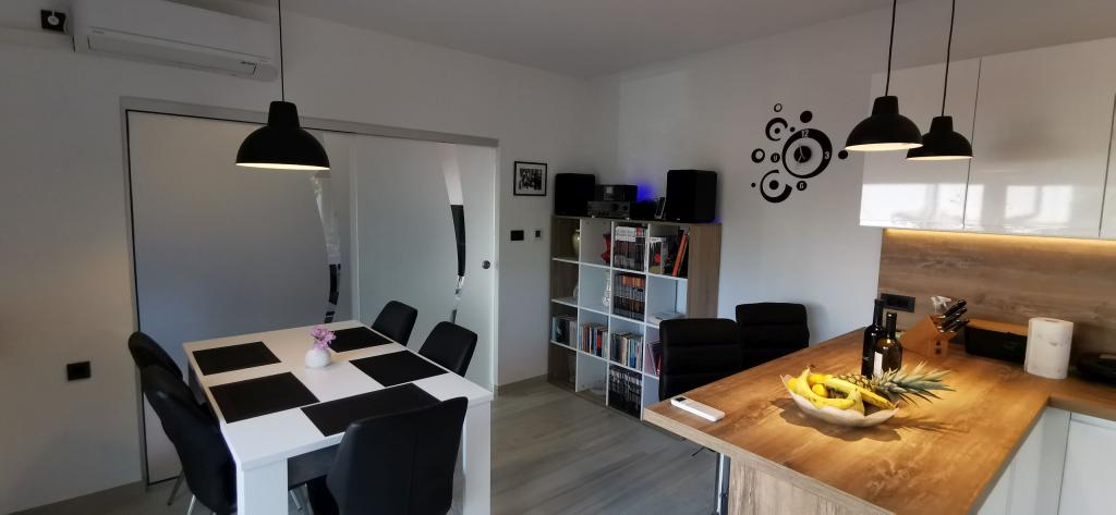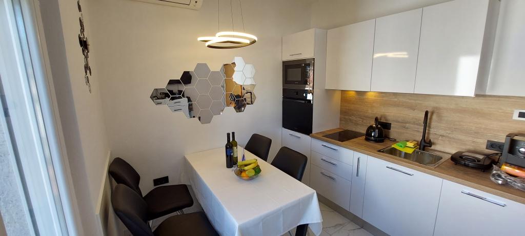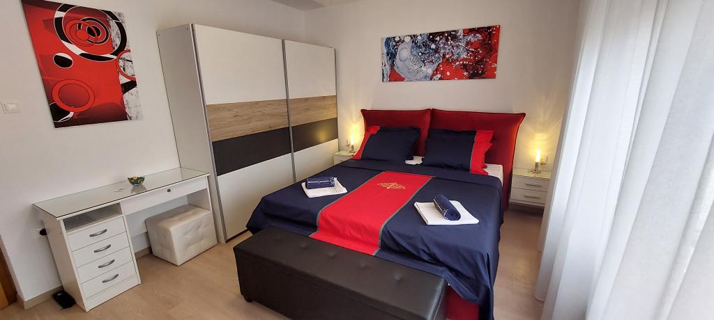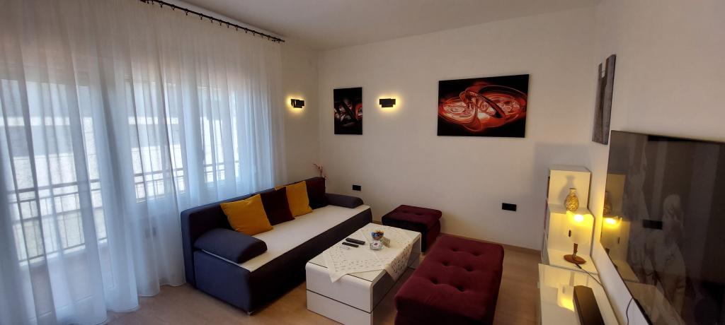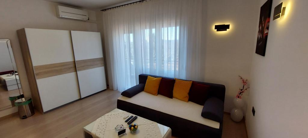Volledig en modern ingerichte twee appartementen nabij het strand gelegen op de mezzanine (appartement Perunika) en de eerste verdieping (appartement Bougenvilija). Beide appartementen hebben twee balkons en een beveiligde parkeerplaats voor het huis. Een slaapkamer met een tweepersoonsbed, een woonkamer met een slaapbank en een keuken met een eethoek zijn voorzien van airconditioning. Internetten is gratis. Het gebouw ligt op 5 minuten lopen van het centrum en op nog geen 2 minuten (100 meter) van het strand.
