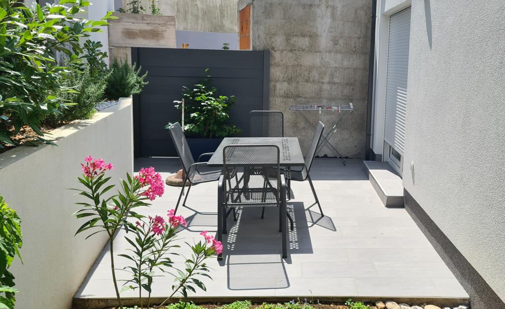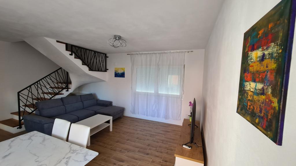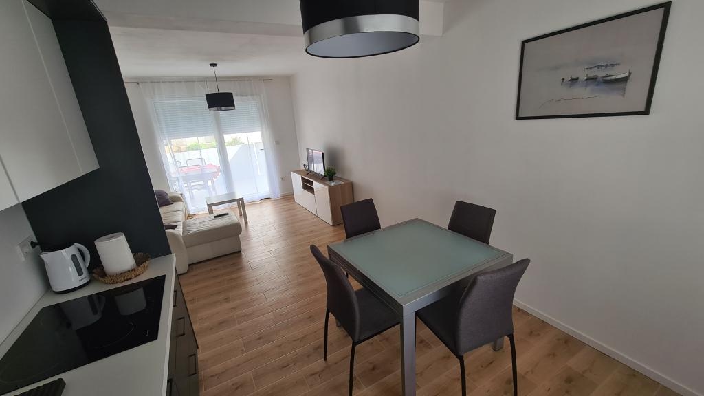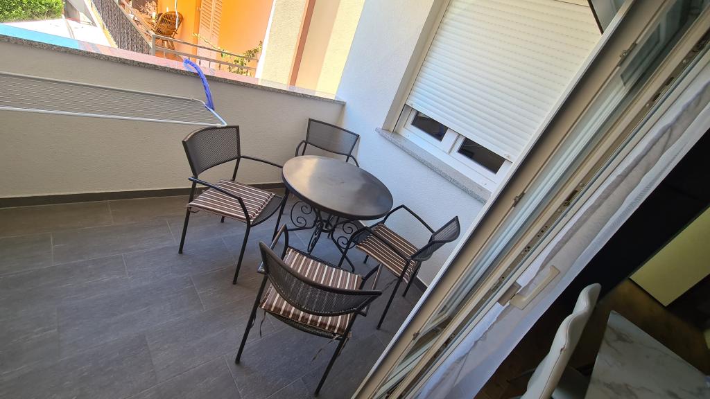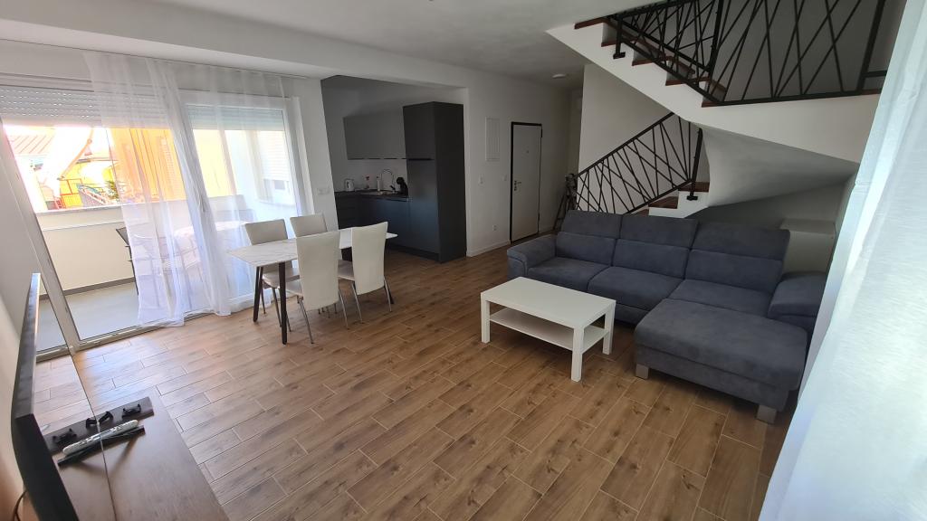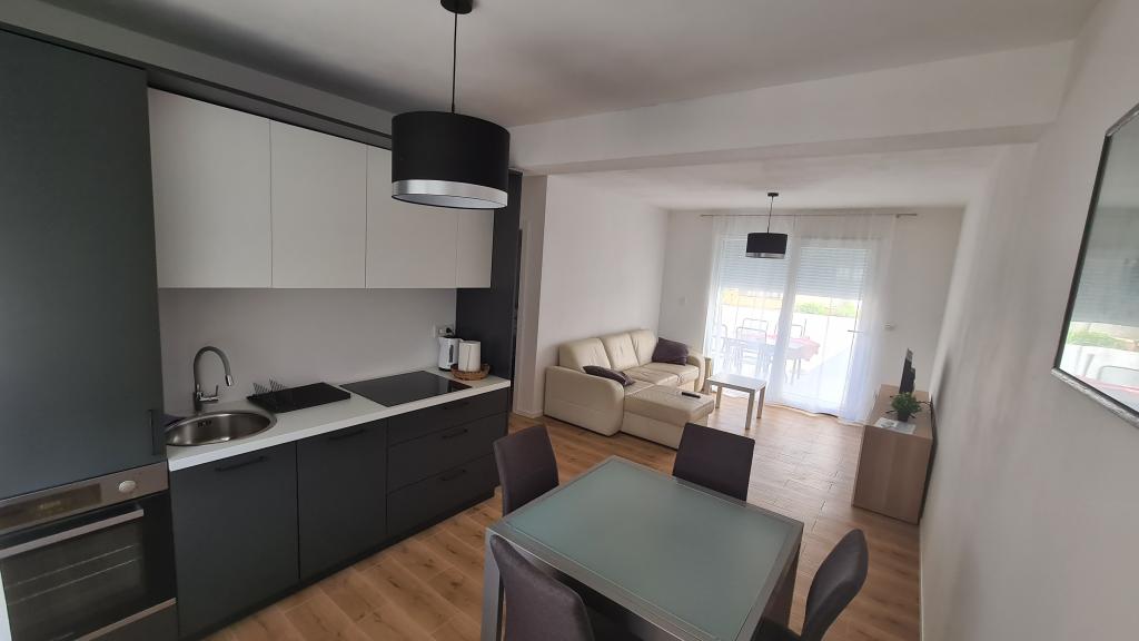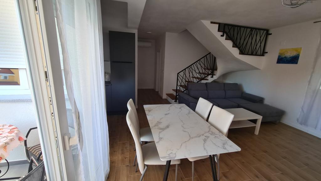 AP-Begane grond: Nieuw, goed ingericht appartement, ideaal voor een geweldige vakantie. Het woongebouw bestaat uit een entree, een badkamer, een keuken, een eigen terras en een eetkamer, een woonkamer met een slaapbank en een slaapkamer met een tweepersoonsbed. Gasten hebben een eigen terras tot hun beschikking. AP-verdieping van twee verdiepingen: Nieuw, goed ingericht appartement, ideaal voor een geweldige vakantie. Het woongebouw bestaat uit twee verdiepingen. Woongedeelte op de benedenverdieping (ingang, badkamer, keuken, eetloggia en woonkamer met slaapbank) en slaapgedeelte op de bovenverdieping (twee slaapkamers met tweepersoonsbedden). Het ligt op een uitzonderlijke locatie, twee minuten van het centrale plein, één minuut van winkels en bakkerijen en diverse restaurants, en drie minuten van het strand. Gratis parkeergelegenheid en WiFi.