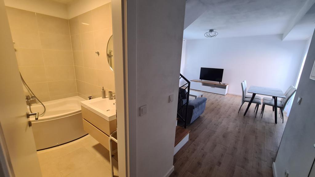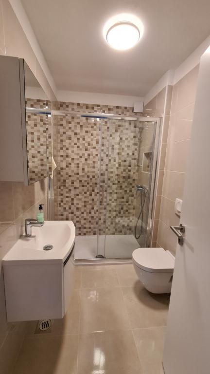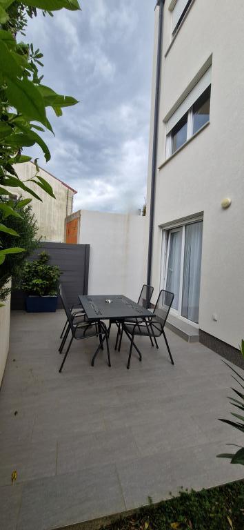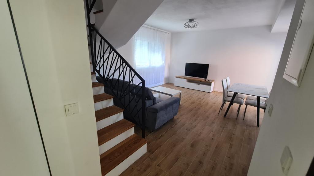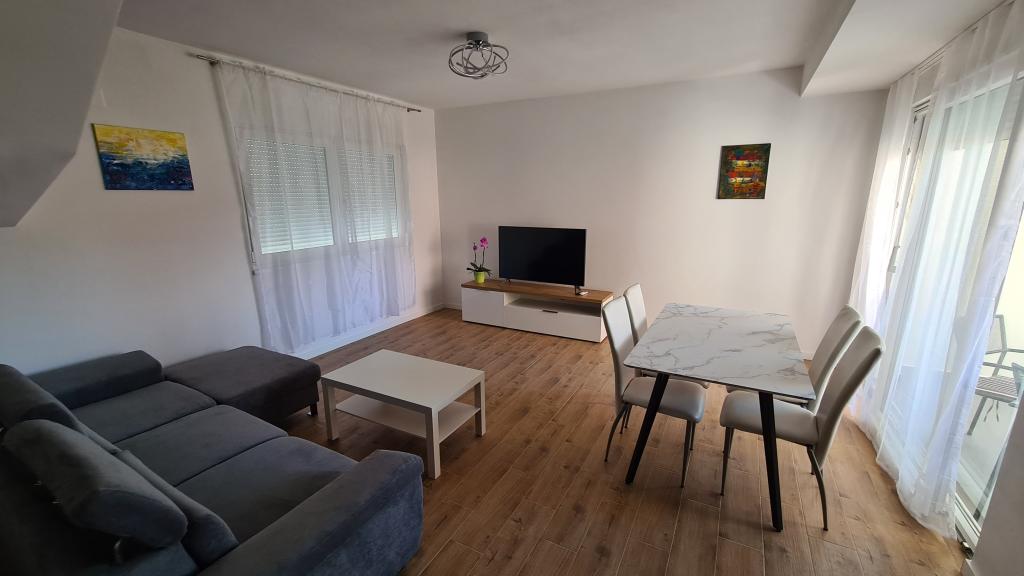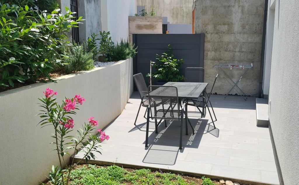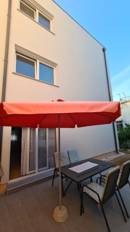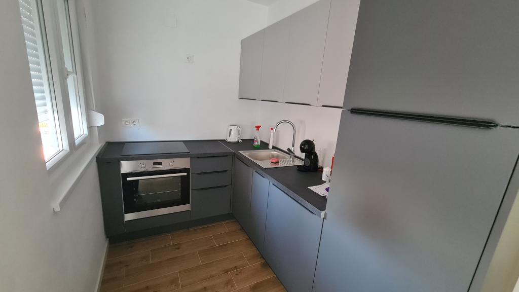 AP-Begane grond: Nieuw, goed ingericht appartement, ideaal voor een geweldige vakantie. Het woongebouw bestaat uit een entree, een badkamer, een keuken, een eigen terras en een eetkamer, een woonkamer met een slaapbank en een slaapkamer met een tweepersoonsbed. Gasten hebben een eigen terras tot hun beschikking. AP-verdieping van twee verdiepingen: Nieuw, goed ingericht appartement, ideaal voor een geweldige vakantie. Het woongebouw bestaat uit twee verdiepingen. Woongedeelte op de benedenverdieping (ingang, badkamer, keuken, eetloggia en woonkamer met slaapbank) en slaapgedeelte op de bovenverdieping (twee slaapkamers met tweepersoonsbedden). Het ligt op een uitzonderlijke locatie, twee minuten van het centrale plein, één minuut van winkels en bakkerijen en diverse restaurants, en drie minuten van het strand. Gratis parkeergelegenheid en WiFi.