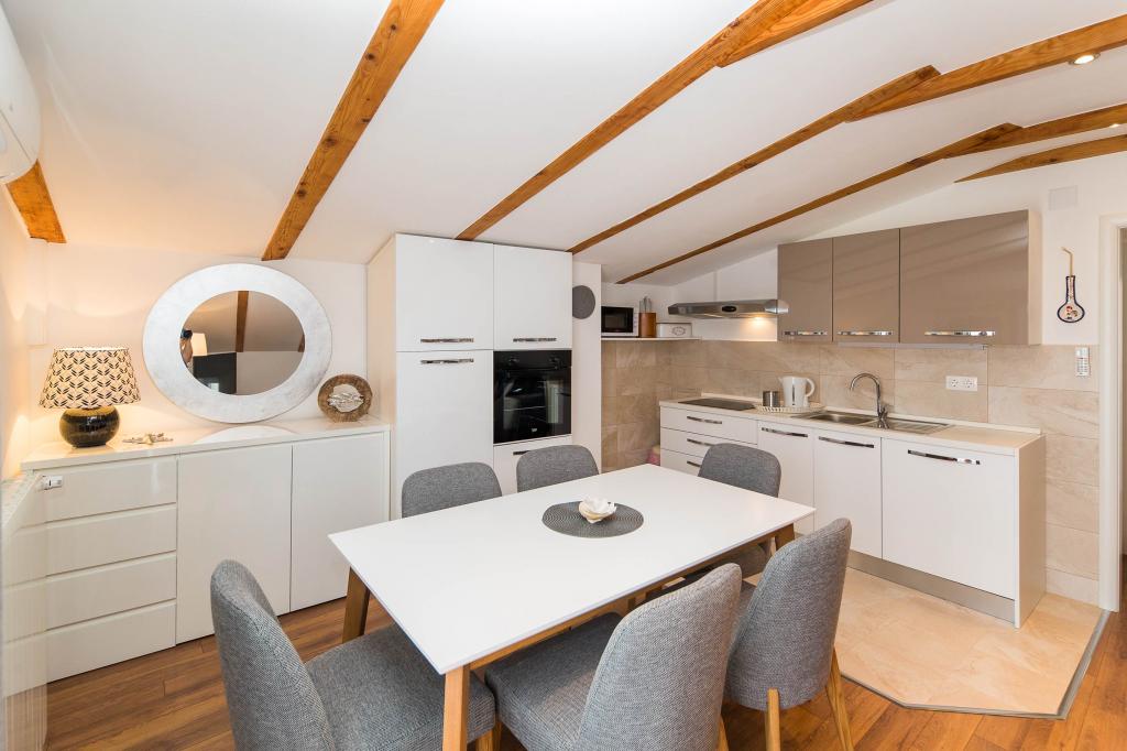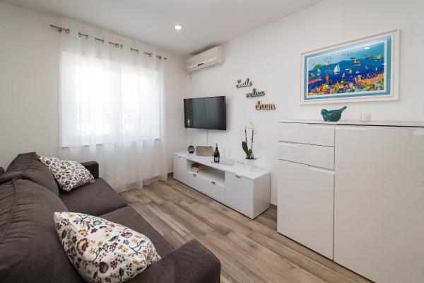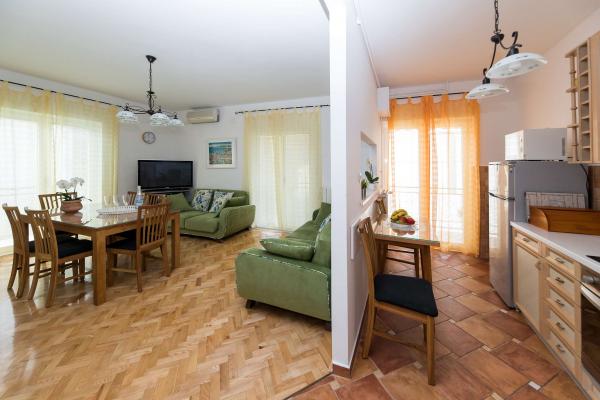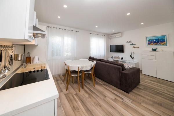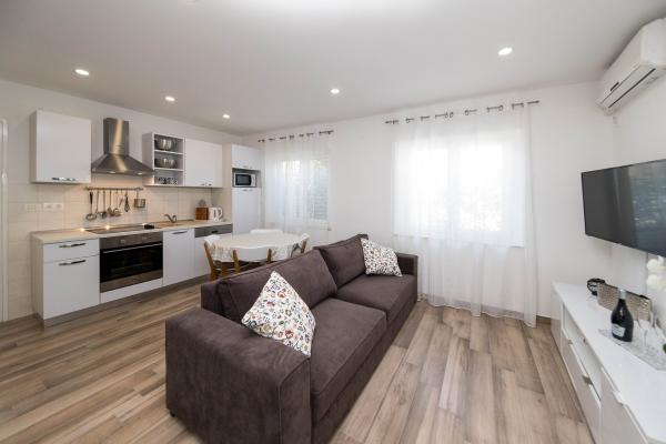 Wij hebben hier in juli 2023 een heerlijke vakantie gehad. De eigenaren zijn erg aardig en meegaand. De eigenaar liet ons ons appartement zien en legde alles uit. De eigenaar stond ons toe om onze auto al 's ochtends voor het appartement te parkeren. Uitstekende communicatie met de eigenaren. Het hele huis is mooi, ingericht, onderhouden, tuin vol bloemen, overal erg schoon. We hadden volledige privacy, rust. Het appartement is gloednieuw, modern en mooi ingericht, zeer schoon en ruim genoeg. Twee airconditioners, wasmachine en vaatwasser waren uitstekend. We gebruikten ook een strijkijzer en een EHBO-doos. De keuken is goed uitgerust, er ontbrak niets. Vijf mensen voelden zich daar geweldig. We gebruikten het balkon met uitzicht op Selce, het terras is geweldig voor het drogen van natte spullen van het strand. Het appartement heeft zelfs een extra ruimte voor springkussens, zwemspullen, scooters. Het appartement is geweldig. We waarderen de prachtige nabijheid van het centrum, de winkel en de groente- en fruitmarkt, allemaal binnen 2 minuten lopen. Strand van Poli Mora binnen 5 minuten lopen. De schoonmaakster is erg aardig voor ons en de kinderen, hartelijk. We hebben al een reservering voor de zomer van 2024. We kijken uit naar deze prachtige accommodatie en bevelen deze aan.