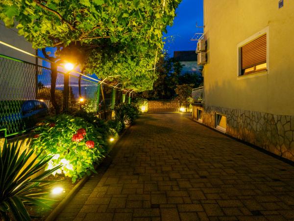 De appartementen van verschillende grootte bevinden zich in een gezinswoning in een van de mooiere en rustigere straten van Selc, een nederzetting die deel uitmaakt van de stad Crikvenica, op slechts ongeveer 250 meter of ongeveer 3-4 minuten lopen naar de zee en het strand. Het is heel gemakkelijk om het huis te bereiken en het is niet moeilijk om het te vinden, door de hoofdweg af te slaan - de snelweg direct na de bushalte, rechtdoor richting de zee. Het huis ligt op ongeveer 350 meter van het centrum van Selce, of ongeveer 5 minuten lopen, waar zich winkels, de Konzum-markt, het postkantoor, geldautomaten, een apotheek, een toeristisch informatiecentrum, restaurants, koffiebars, banketbakkers, souvenirwinkels, haven. Een kleine winkel bevindt zich op ongeveer 100 meter van het huis. . Er is ook een kleine kliniek op ongeveer 100 meter van het huis. Het centrum van Crikvenica ligt op ongeveer 3 km afstand en is te bereiken via een promenade langs de zee zelf. Op het dichtstbijzijnde strand is er een duikcentrum op slechts ongeveer 250 meter of 3-4 minuten lopen van het huis, en de stranden van Tunar en Poli Mora liggen op ongeveer 350 meter van het huis.