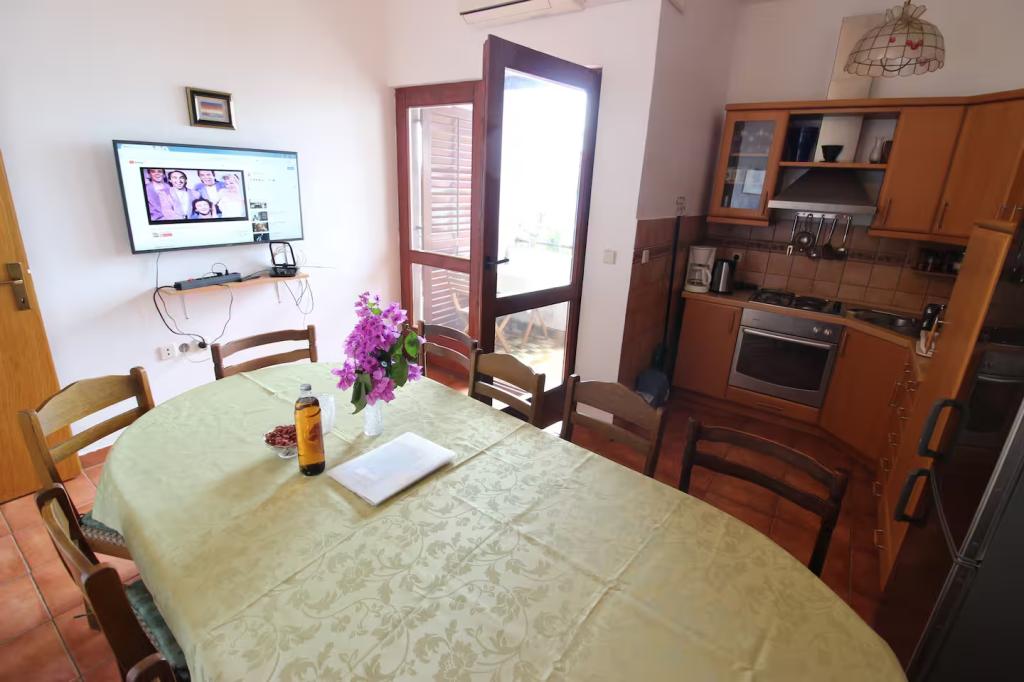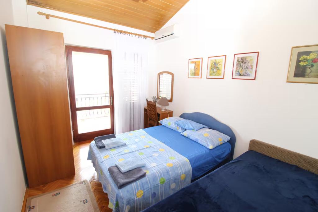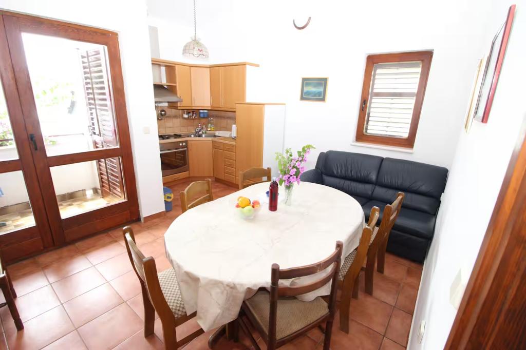 Appartement Stipe bevindt zich op de gehele bovenste verdieping van een huis dat direct aan zee ligt. Het appartement heeft een oppervlakte van 130 m2 en bestaat uit een ingerichte keuken met eetkamer met klein balkon en uitzicht op zee, in totaal 4 slaapkamers, waarvan er twee toegang hebben tot een balkon en uitzicht op zee, en de andere twee slaapkamers zonder balkon en zonder uitzicht op zee, 2 badkamers met toilet, waarvan één met bad en de andere met douche. Gasten hebben tevens de beschikking over een tuin van circa 400 m2, die zij samen met de eigenaar gebruiken, een open overdekte barbecue met tafel en banken en ligstoelen. Het appartement is ideaal voor gezinnen met kinderen die zorgeloos kunnen spelen in de grote omheinde tuin met directe toegang tot het strand, of voor wandelvrienden, omdat het huis op slechts 2 km van het Nationaal Park Paklenica ligt. Op slechts 40 km van de Stipe appartementen ligt de stad Zadar, die bekend staat om zijn vele attracties en musea en de duizend jaar oude geschiedenis van de oude binnenstad.