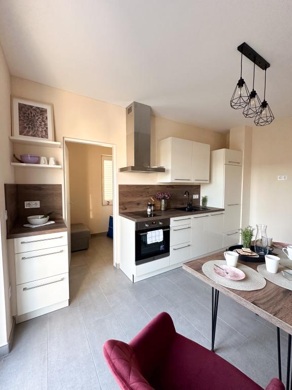 Het appartement is netjes, prettig om in te verblijven en modern ingericht. De locatie is geweldig, een auto is praktisch niet nodig, het ligt dicht bij stranden, winkels, restaurants, alles wat je nodig hebt. De gastheren zijn uiterst vriendelijk en zorgzaam. We kunnen warme aanbevelingen geven voor accommodatie in dit appartement voor een leuke familievakantie in een rustige en comfortabele omgeving. Het is ook geschikt voor een actieve vakantie, omdat het vlakbij het nationale park Paklenica ligt.
