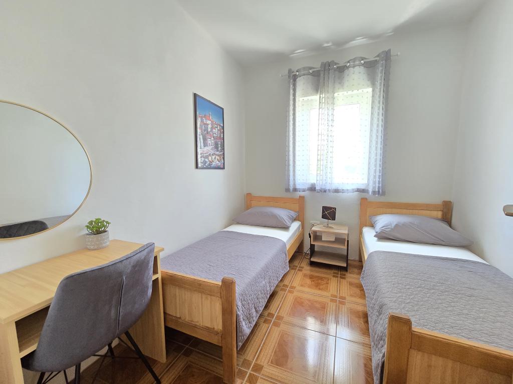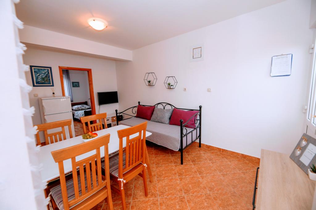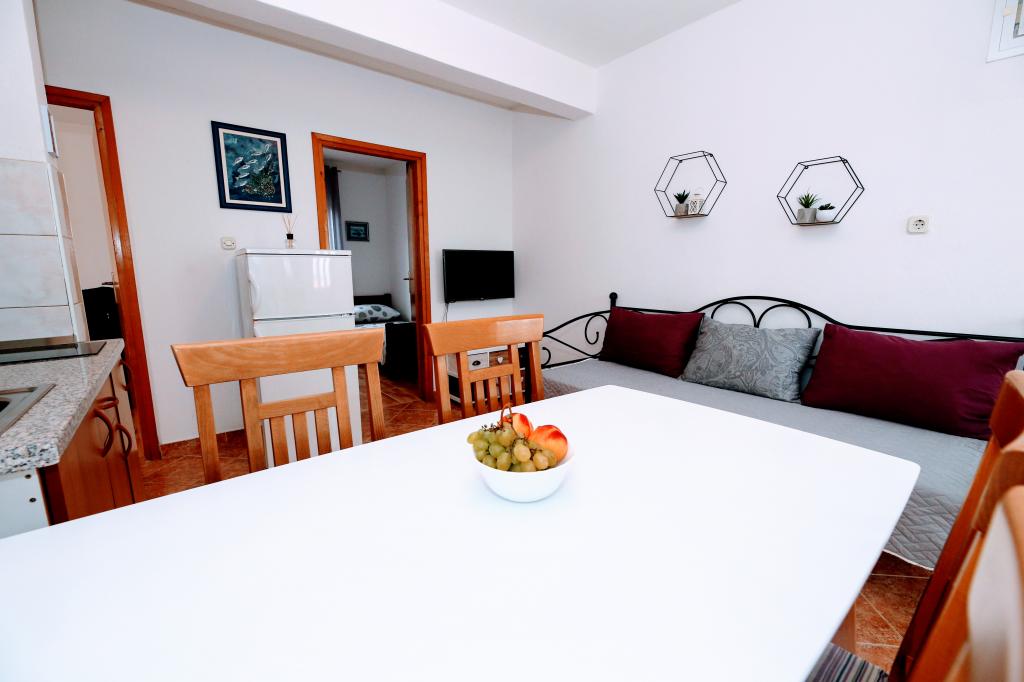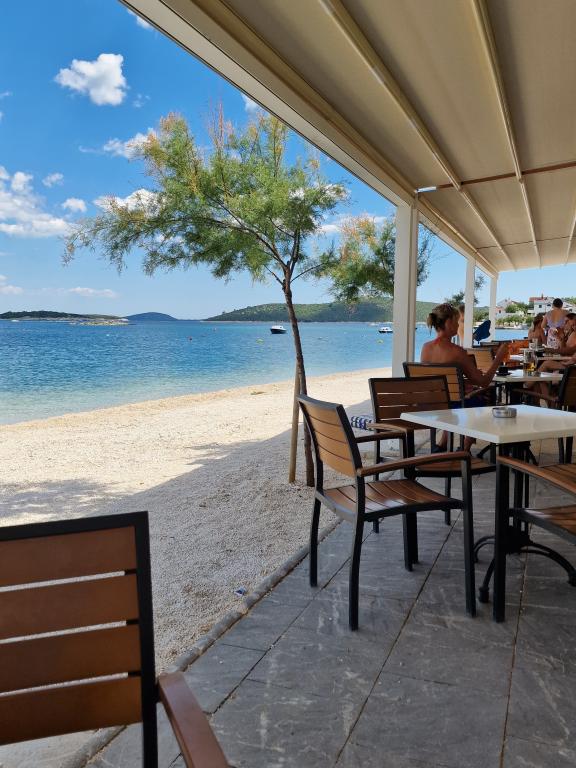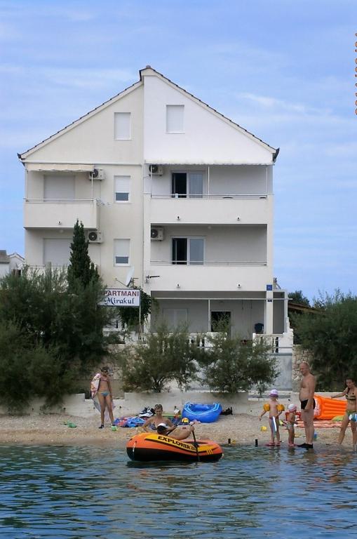 Mirakul Apartments ligt in Sevid, een klein stadje aan de Rivièra van Trogir, halverwege Trogir en Primošten. Het is een rustige omgeving, ideaal voor degenen die een vakantie willen weg van de drukte van de stad, maar als ze beroemde toeristische bestemmingen willen bezoeken, in de buurt zijn Rogoznica (10 km), Primošten, Trogir (18 km), Split, Šibenik (45 km), Krka Nationaal Park (60 km)... Appartementen Mirakul-Sevid bestaan uit twee huizen met 8 appartementen en zijn gelegen op een perceel van 1600 m2, 1e rij aan zee, onze tuin ligt op slechts 5 m van het strand. Het strand is kiezelstrand en geschikt voor kinderen.