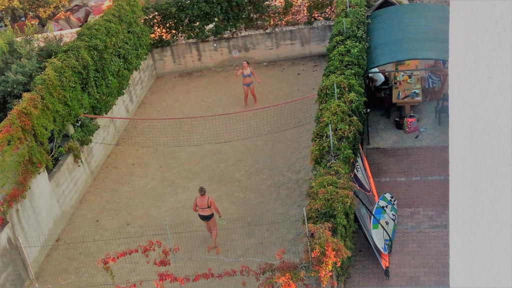 Het appartement ligt direct aan zee. Zuiverheid is 10+. We zijn nog nooit op zo'n schone plek geweest. De eigenaar is erg vriendelijk. Het appartement had alles voor een verblijf, van doekjes tot vaatwastabletten en toiletpapier. Er stond ons een welkomstdrankje te wachten. U heeft de beschikking over een bowlingbaan, een volleybalveld, tafeltennis en tafelvoetbal. Een buitengrill en een plek om rond te hangen