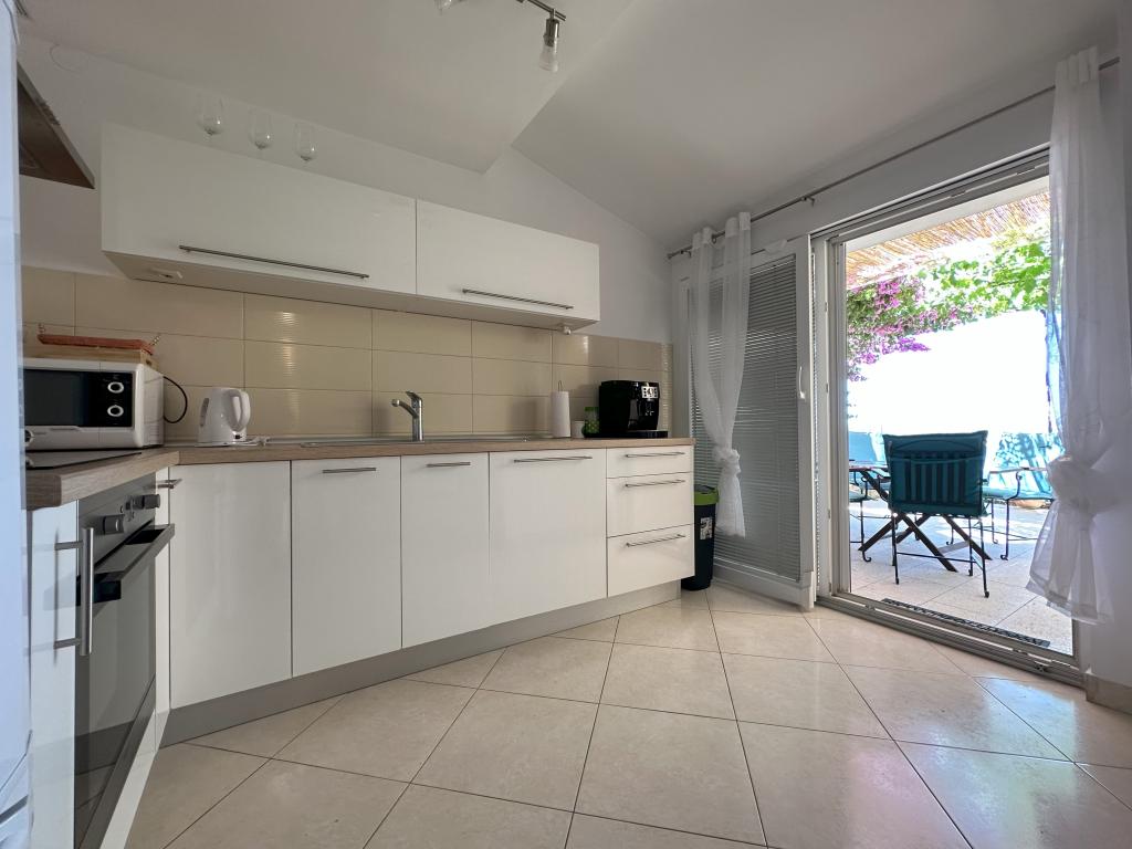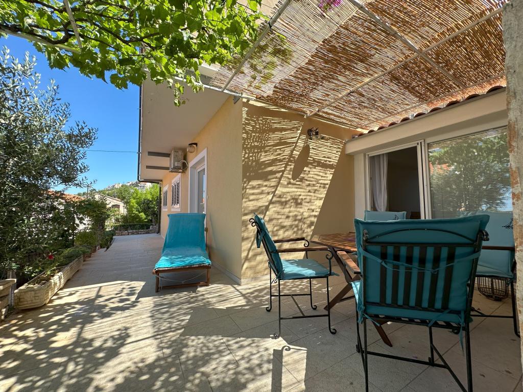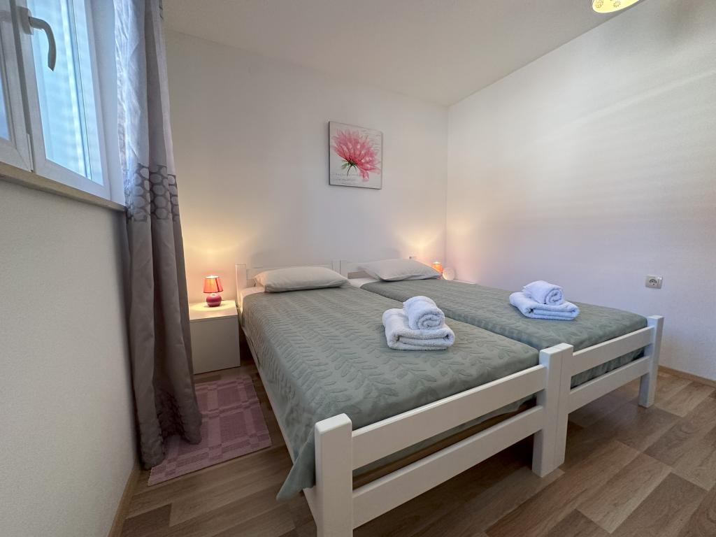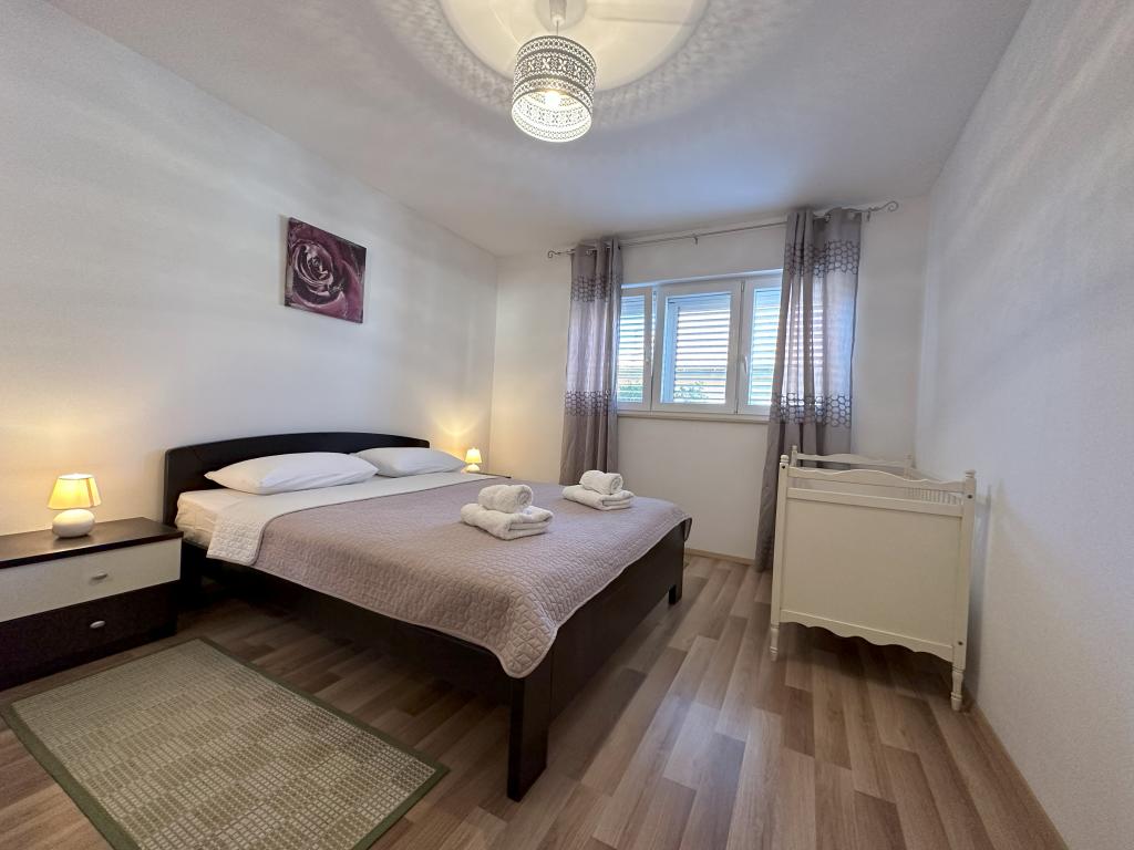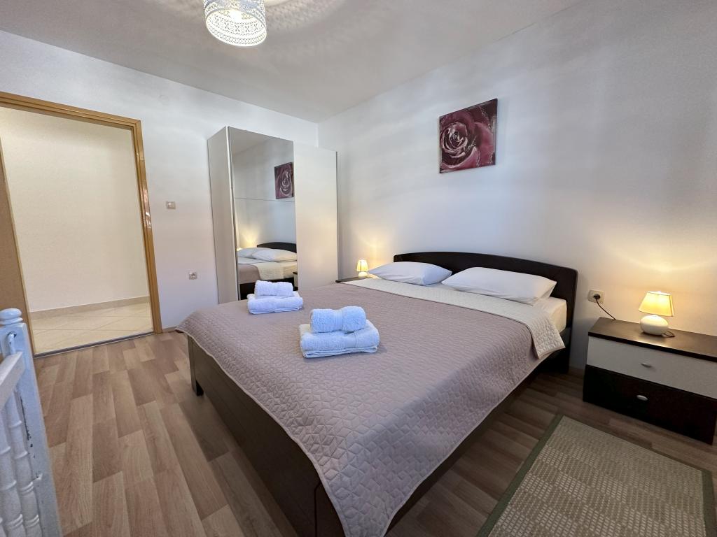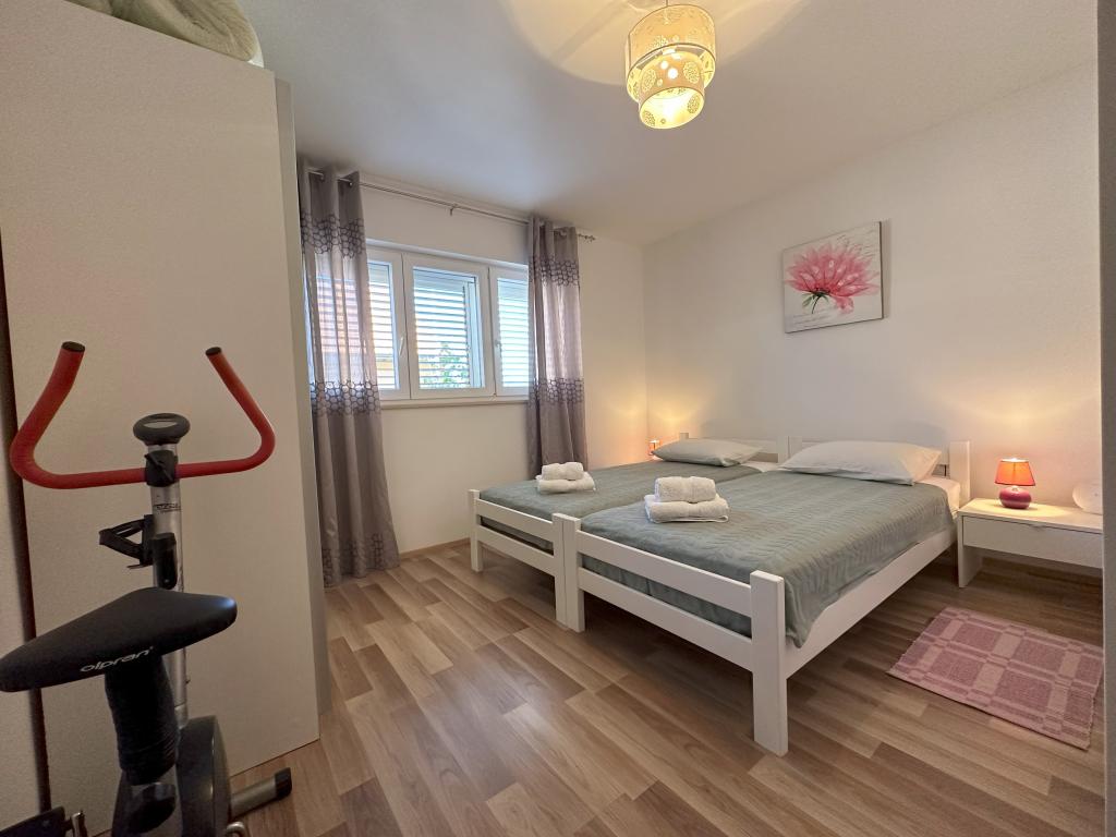 Appartement MAS ligt op 15 minuten lopen van het centrum van de stad Šibenik met zijn rijke culturele en historische erfgoed. Gezellig, modern en pas gerenoveerd, geschikt voor 4 personen, heeft twee slaapkamers. airconditioning, met TV, internet, ingerichte keuken en badkamer. Het appartement bevat ook een slaapbank als extra bed. Appartement MAS is gelegen op de begane grond van een gezinswoning met een aparte ingang en biedt privacy aan iedere gast. Vanaf het terras omgeven door groen, strekt het uitzicht zich uit tot de zee en de eilanden en het stadsstrand Banj, dat op 10 minuten lopen ligt.