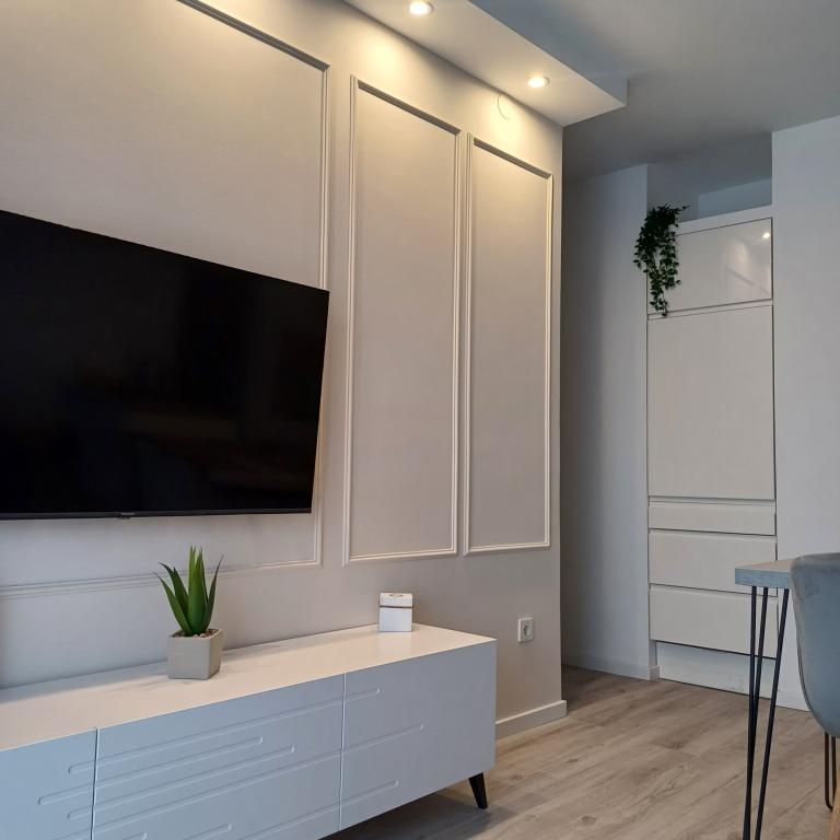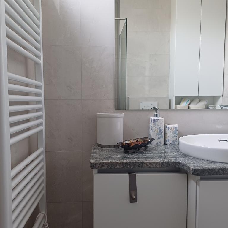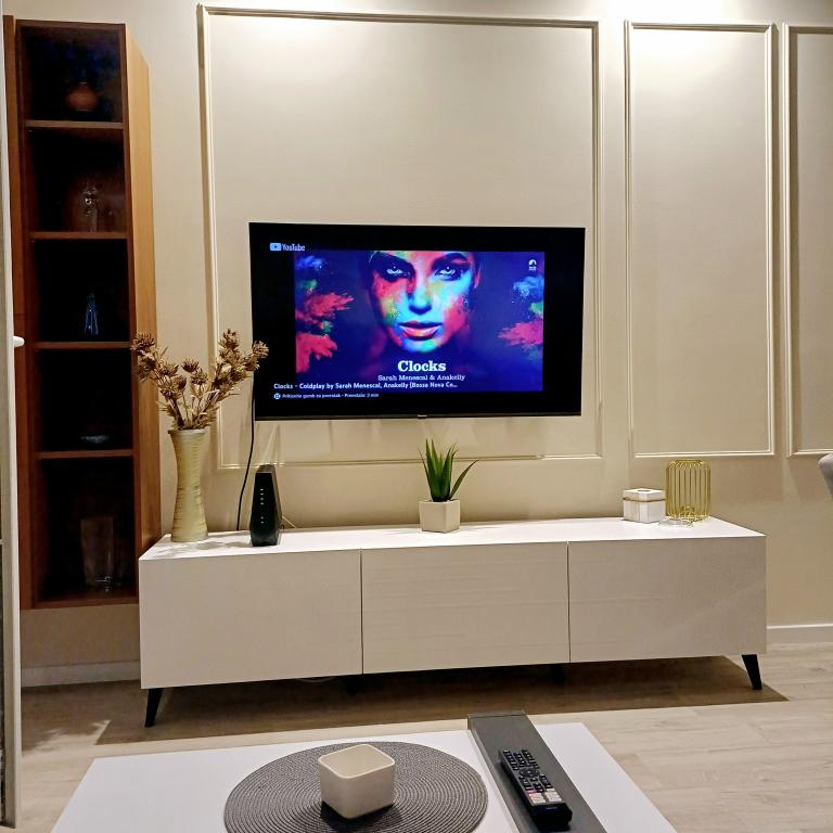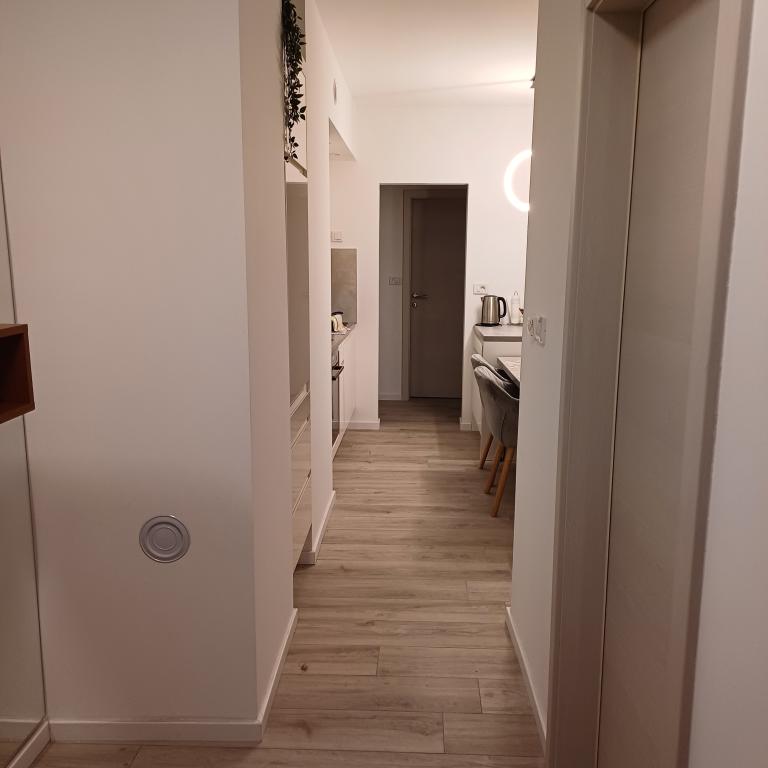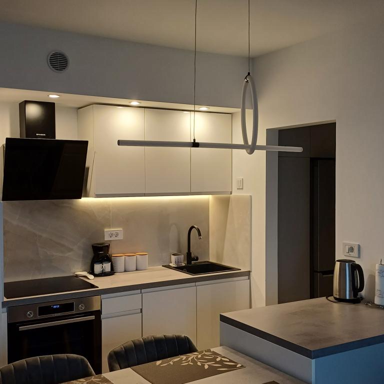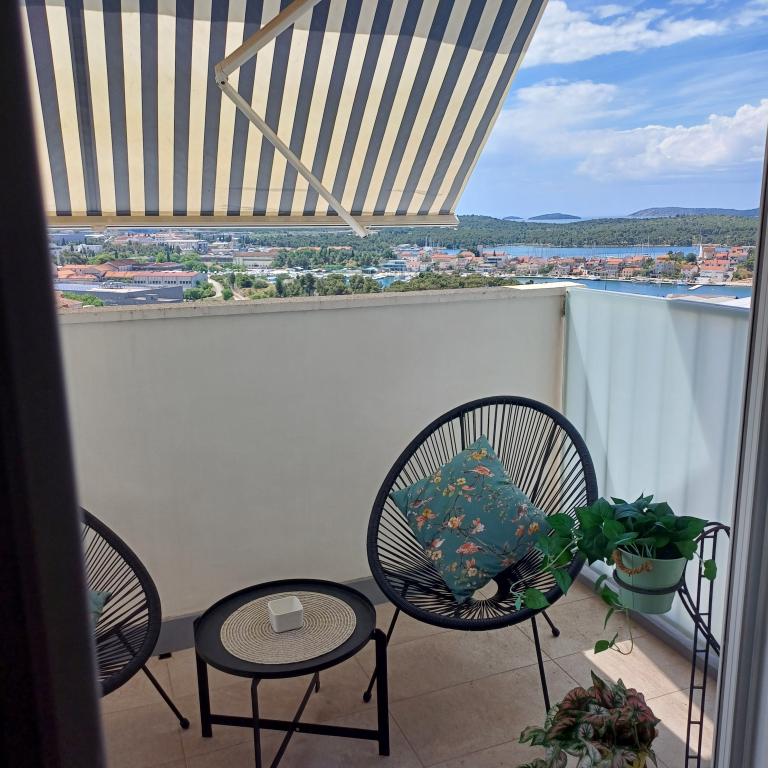 Het luxe appartement is gelegen op de 10e verdieping van een woongebouw in Šibenik op een uitstekende locatie, op 20 minuten lopen van het oude stadscentrum en het stadsstrand Banj. Luxe accommodatie met balkon met prachtig uitzicht op de zee en de stad biedt gasten een aangenaam en ontspannen verblijf. Het appartement bestaat uit een ruime slaapkamer, hal, badkamer met inloopdouche, haardroger en wasmachine. De woonkamer en eetkamer bevinden zich in een ruimte met een moderne keuken die is uitgerust voor een kort of lang verblijf en voorzien is van serviesgoed, keukengerei, een fornuis, een oven, een vaatwasser, een koelkast, een waterkoker en een koffiezetapparaat. Het appartement is voorzien van airconditioning en gasten hebben toegang tot tv en gratis WiFi. Er is openbare parkeergelegenheid voor het gebouw zelf. Zodra u het gebouw verlaat en de straat oversteekt, vindt u op 30 meter afstand een supermarkt, een apotheek en een koffiebar, evenals een bank, postkantoor, pizzeria, fitnessruimte, kapsalon, winkelcentrum, busstation , aanlegsteiger ligt op een afstand van 500 m - 700 m.