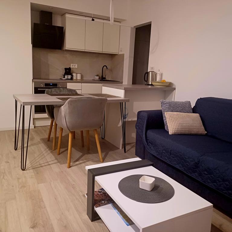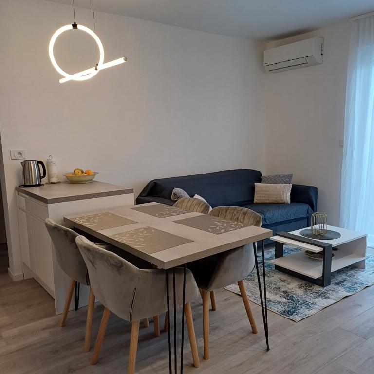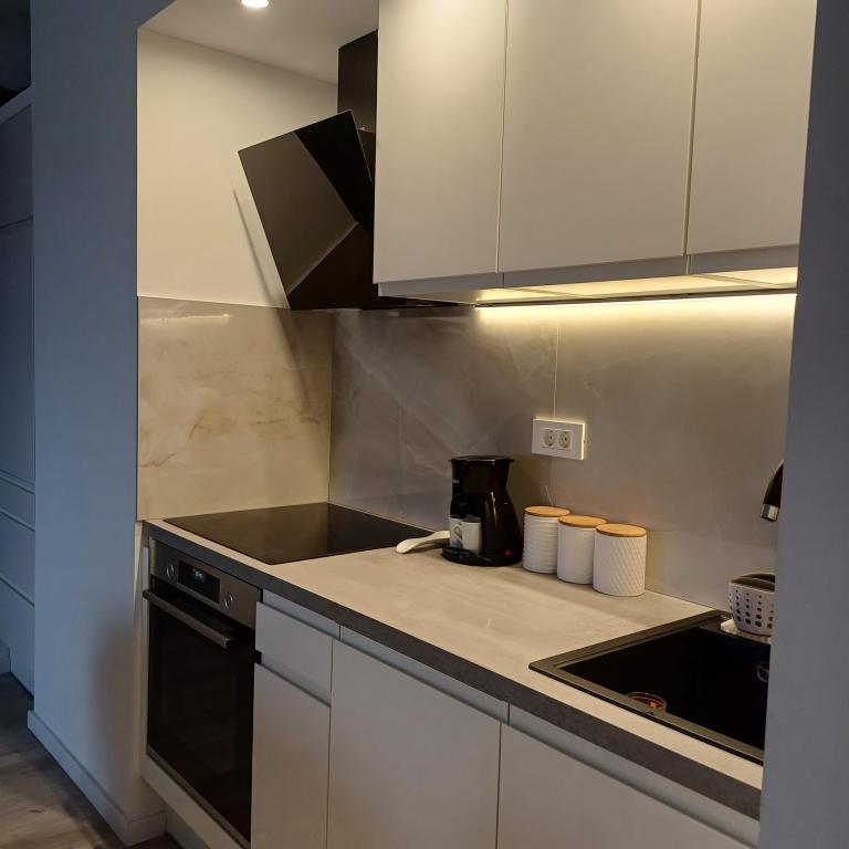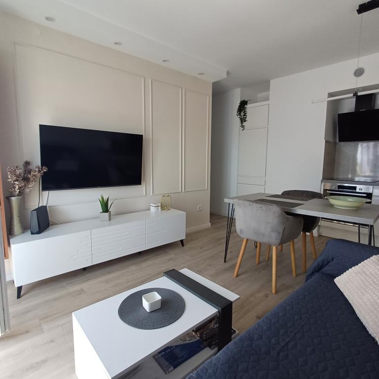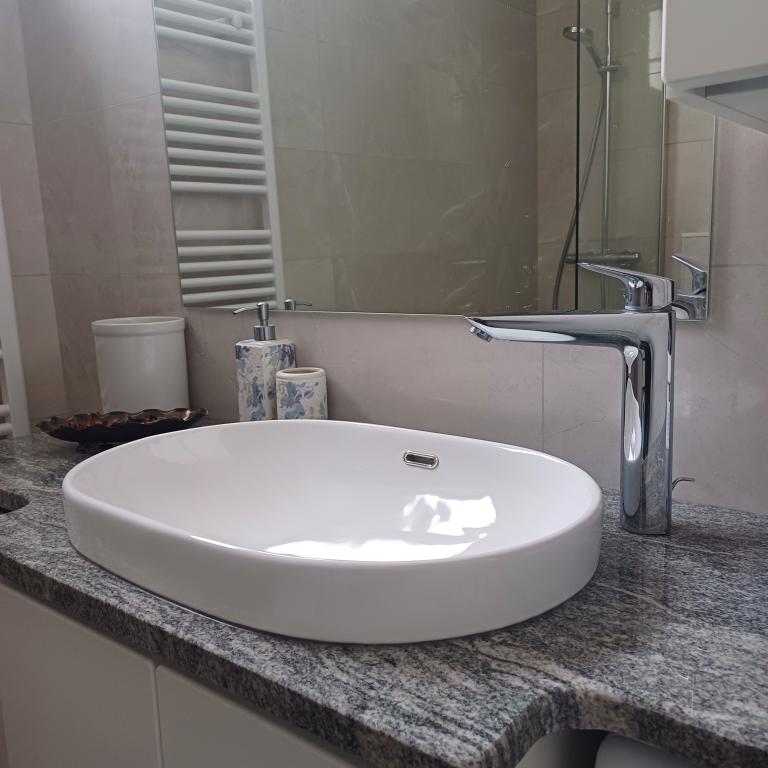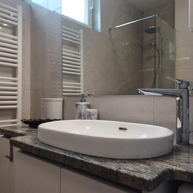 Het luxe appartement is gelegen op de 10e verdieping van een woongebouw in Šibenik op een uitstekende locatie, op 20 minuten lopen van het oude stadscentrum en het stadsstrand Banj. Luxe accommodatie met balkon met prachtig uitzicht op de zee en de stad biedt gasten een aangenaam en ontspannen verblijf. Het appartement bestaat uit een ruime slaapkamer, hal, badkamer met inloopdouche, haardroger en wasmachine. De woonkamer en eetkamer bevinden zich in een ruimte met een moderne keuken die is uitgerust voor een kort of lang verblijf en voorzien is van serviesgoed, keukengerei, een fornuis, een oven, een vaatwasser, een koelkast, een waterkoker en een koffiezetapparaat. Het appartement is voorzien van airconditioning en gasten hebben toegang tot tv en gratis WiFi. Er is openbare parkeergelegenheid voor het gebouw zelf. Zodra u het gebouw verlaat en de straat oversteekt, vindt u op 30 meter afstand een supermarkt, een apotheek en een koffiebar, evenals een bank, postkantoor, pizzeria, fitnessruimte, kapsalon, winkelcentrum, busstation , aanlegsteiger ligt op een afstand van 500 m - 700 m.