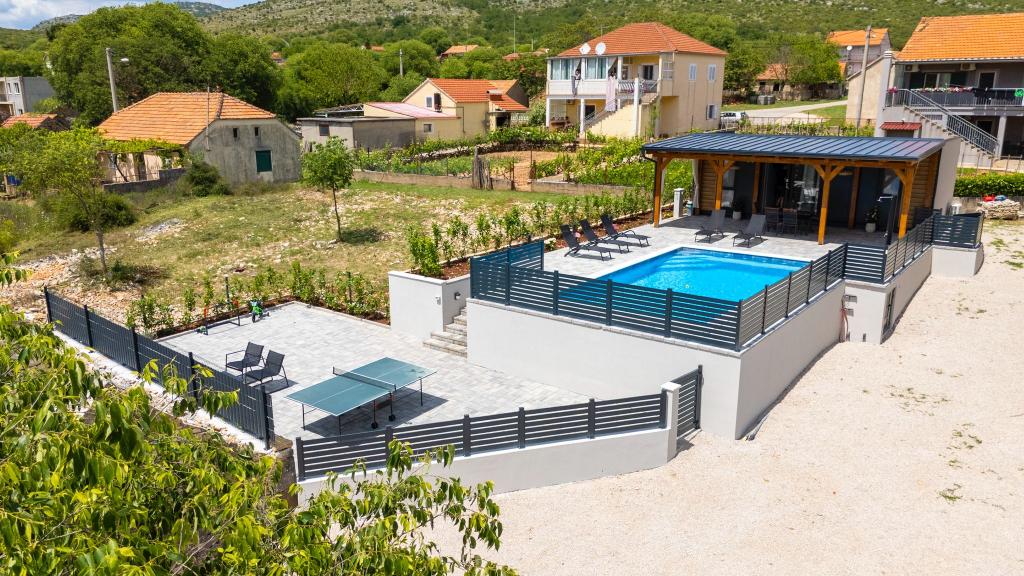 Volledig en modern ingerichte stacaravan op het platteland, midden in de natuur. We beschikken over een groot verwarmd zwembad van 4x8 meter en 150 cm diep. Het zwembad is privé en omgeven door een hek en groen. We beschikken over een grote tuin, met in één gedeelte een ontspanningsruimte, tafeltennistafel en een trampoline voor de allerkleinsten. De accommodatie ligt op 23 km van het stadscentrum, 20 km van het strand, 35 km van de luchthaven van Split en 30 km van Nationaal Park Krka. In de directe omgeving, op 7 km afstand, vindt u de oprit naar de snelweg. Šibenik is een stad met een rijk historisch erfgoed en maar liefst vier verschillende culturen.