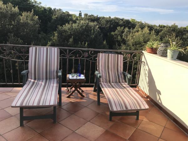 Een welkomstdrankje is bij de prijs inbegrepen. Er is de mogelijkheid om gebruik te maken van een stenen barbecue in de tuin van het huis. We verwelkomen gasten met een bagagekar in de haven van het eiland.