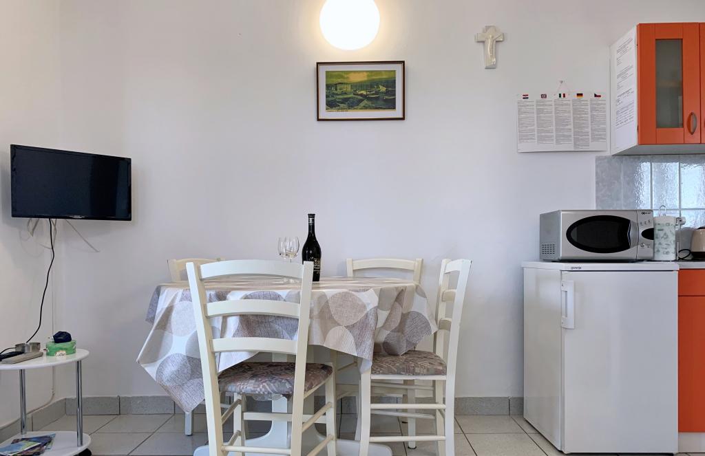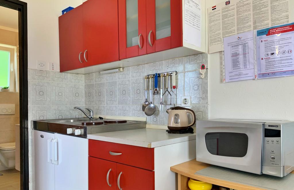 Uitstekende accommodatie, net als in uw eigen huis. Mevrouw Marija verwelkomt ons altijd vrolijk, hartelijk, onopvallend, om te prijzen, alles is netjes, schoon, veilige parkeergelegenheid, schaduw, terras en uitzicht op zee...alles voor de hoogste beoordeling