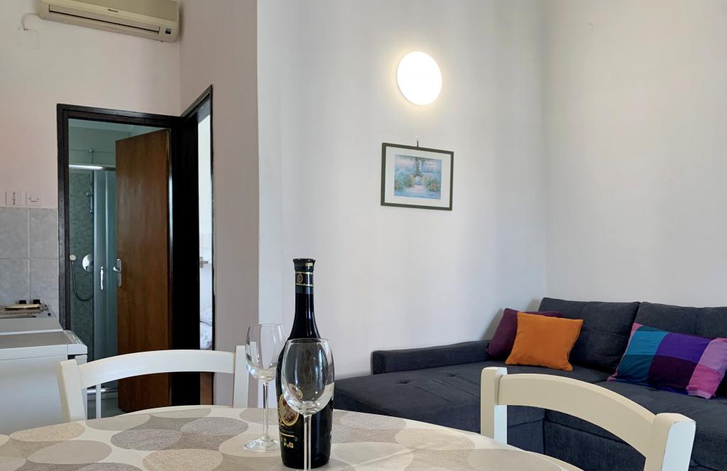 Aanbevolen accommodatie. De eigenaar Marija is vriendelijk en onopvallend. Groot terras, in de schaduw, met uitzicht op zee. Het appartement is schoon en van alle gemakken voorzien. Beveiligde parkeergelegenheid in de tuin. Dicht bij het zandstrand, met natuurlijke schaduw. We waren zeer tevreden.