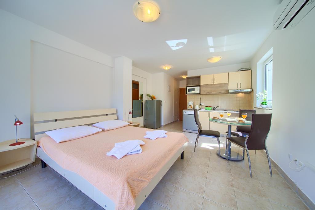 Onze appartementen bevinden zich in een twee-onder-een-kapwoning en liggen niet ver van het centrum van Šilo (ongeveer 5 minuten lopen). De appartementen zijn gloednieuw, modern ingericht, hebben een viersterrenclassificatie en liggen op slechts honderd meter van de zee en een zandstrand dat ideaal is voor kinderen. Elk appartement beschikt over een beveiligde parkeerplaats.