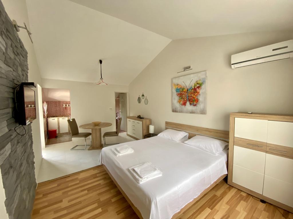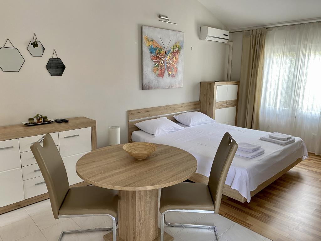 Het huis ligt in een rustige omgeving, direct aan zee, op minder dan een minuut lopen van het strand, fastfoodrestaurants en andere voorzieningen op het strand. Er zijn drie appartementen in het huis, waarvan appartement M1 en M2 zich op de eerste verdieping bevinden en appartement M3 op de begane grond. Alle appartementen zijn volledig en modern uitgerust.