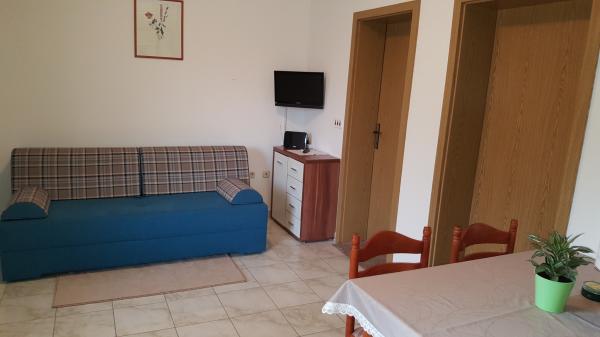 Apartments Bebac zijn twee volledig uitgeruste, zelfstandige appartementen, gelegen op slechts 2 minuten. lopen naar het strand, restaurants, speeltuinen en andere faciliteiten. Elk appartement heeft een ruime keuken-woonkamer, slaapkamer en badkamer. Ze hebben een gemeenschappelijk terras en een parkeerplaats naast de deur. Ze zijn geschikt voor twee gezinnen (8 personen).