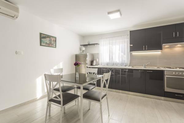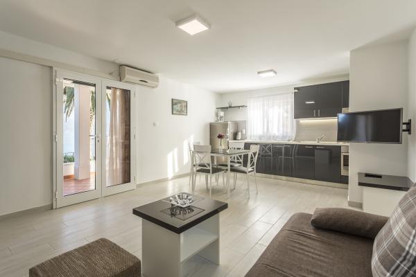 De gastheren zijn erg vriendelijk en meegaand. Het appartement is erg schoon en je hebt je eigen terras. Het huis met de prachtige tuin is zeer goed onderhouden en ligt direct aan het schone en goed onderhouden strand. We komen graag terug bij de familie Grubic