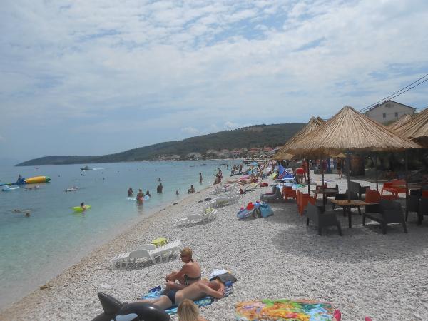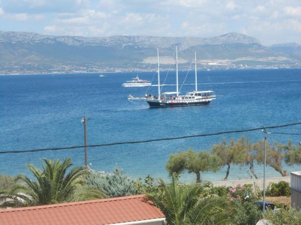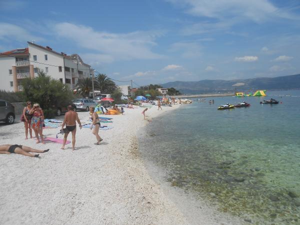 We voelden ons zeer comfortabel bij mevrouw Ivanka, het appartement was schoon, goed ingericht, alle ramen hadden netten. De gastheer is een erg aardige dame, ze voorzag ons van alles wat we nodig hadden. Het huis ligt heel dicht bij het strand en tegelijkertijd onder het bos, dus meestal was airconditioning niet nodig, er was een aangename lucht uit de bergen (en we woonden op zolder). Het strand is schoon, kiezelachtig, onbevolkt. Nabijheid en goede bereikbaarheid van twee prachtige historische steden - Trogir en Split (per auto, openbaar vervoer, boot). Een kaartje voor de boot Slatine - Split kost 5,50 euro