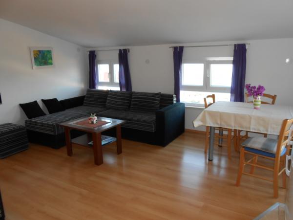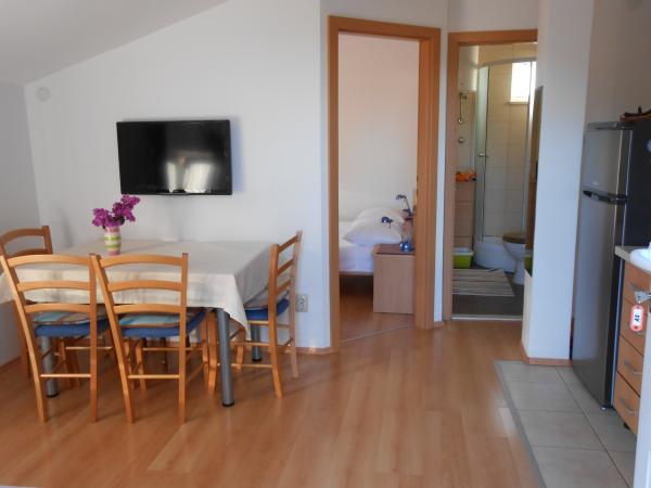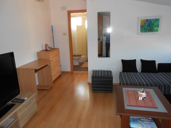Goede locatie. Zeer aardige en behulpzame eigenaar, mevrouw Ivanka. Zeer mooi appartement, schoon. Groot terras met tafel en ligstoelen. Een geweldige plek om te ontspannen. Ik hoop dat we daar nog een keer terug zullen gaan