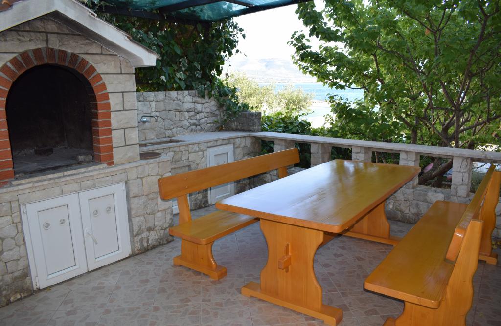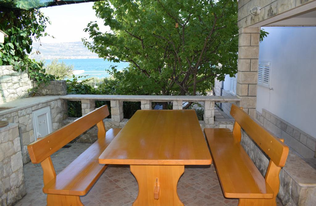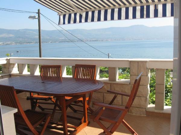 Appartement in overeenstemming met de beschrijving en foto's. Goed uitgerust. 2 slaapkamers, een kamer met een eetkamer met 2 slaapbanken, een keuken (er is alles) en een badkamer. Een prachtig uitzicht vanuit de kamer en vanaf het balkon. Op het balkon een tafel met stoelen, ligstoelen en een droger. Heel dicht bij het strand, schoon, turquoise water. Op het strand een bar, douche. Rotsachtige strand, kiezelstrand en concrete plaatsen. Zeer dicht bij Trogir en Split - watertaxi's of openbaar vervoer. Naar de supermarkt ongeveer 300 m, brengt het brood naar het naburige huis een bakkerij van de deur - elke dag rond 9 uur. De eigenaar zorgt voor de gasten, leuk, glimlachend. We raden het iedereen aan!
