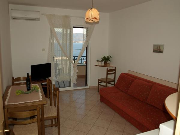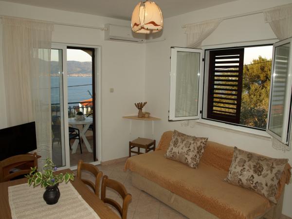 Bouwterrein, plaats beschrijvingen en foto's van de appartementen en ga akkoord met de werkelijkheid. geweldige plek voor een rustige ontspannen vakantie. Eigenaars zeer vriendelijk, de appartementen zijn schoon, voldoende voorzieningen beschrijving. Zeker Ik beveel deze faciliteit en zou hem doporučula als vrienden, familieleden en het grote voordeel dat zowel het appartement en het strand is weg van het verkeer en van de weg. Het strand is mooi, klein, kiezel, een kristalheldere zee. Wie houdt van een beetje drukker vakantie, allemaal beschikbaar in de buurt. Trogir goede toegang tot lokale bus en boot, mooie reis. Boot en een goede toegang naar Split.