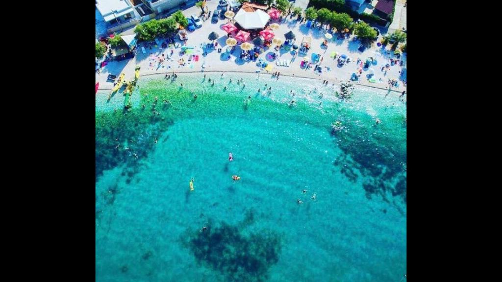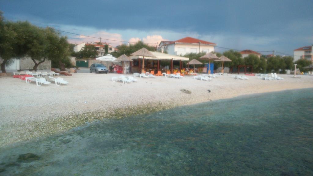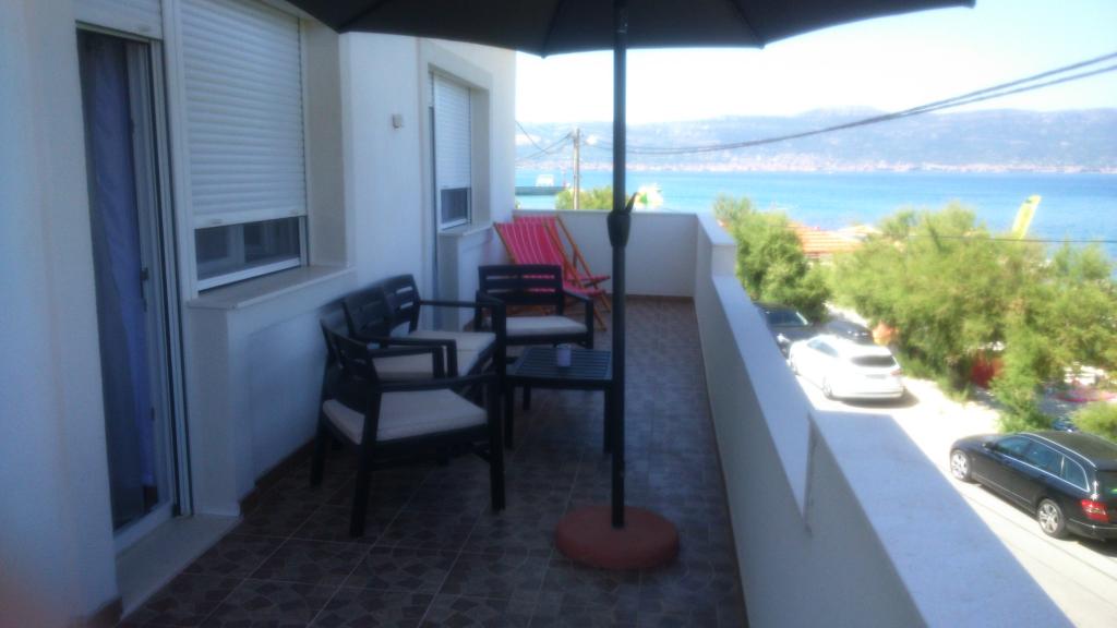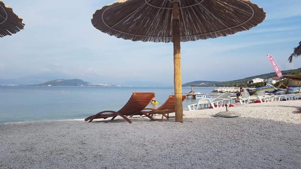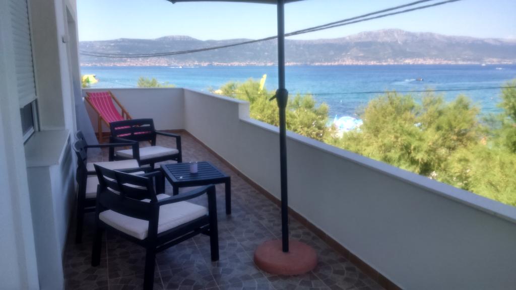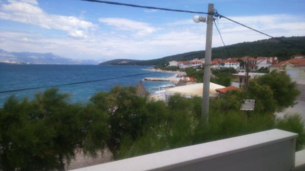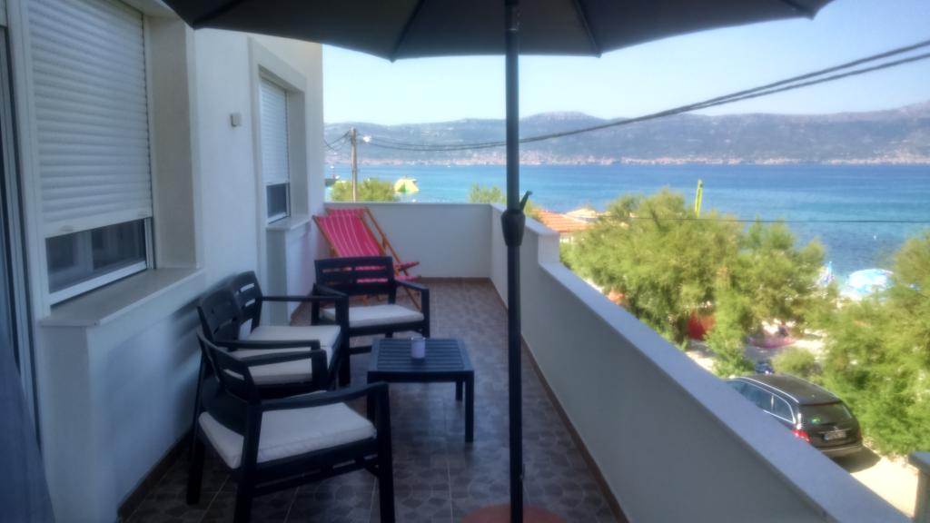 De appartementen zijn in een gezinswoning eerste rij naar de zee twee appartementen op de begane grond en een boven. De appartementen zijn groot, uitgerust met alles wat uw vakantie mooier en aangenamer zou maken. Ze hebben twee grote parkeerplaatsen, een groot overdekt terras, een terras met uitzicht op de zee en een balkon met een prachtig uitzicht op Split en de zee. De appartementen beschikken over airconditioning, tv, internet, wasmachine, vaatwasser, handdoeken en extra belastbaar linnengoed. Tien minuten lopen van het huis is een winkel, bakker, restaurant, aanlegsteiger die naar Split en Trogir gaat. De appartementen op de begane grond hebben een oprit voor gehandicapten, een buitendouche en een barbecue, het strand ligt aan de overkant van de weg.