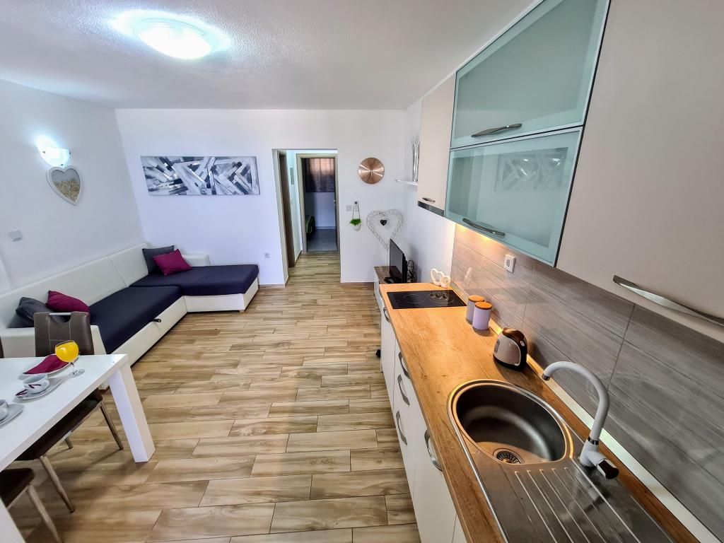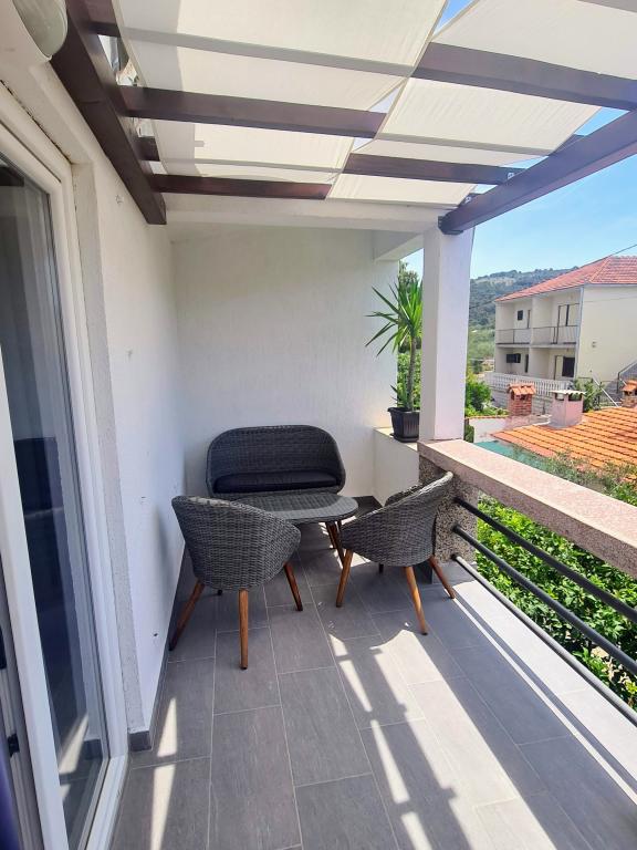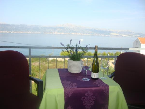 Appartementen Villa Palma in Slatine liggen op 15 m van de zee en alle appartementen hebben uitzicht op zee. De appartementen zijn comfortabel en voorzien van: airconditioning, sat/tv, wi-fi. Ze bevinden zich op een oppervlakte van 1000 m2. Voor het appartement bevindt zich een prachtig ingerichte tuin met barbecue waar u met mediterrane planten gezellig met vrienden kunt socialiseren. Ze bevinden zich op een ideale locatie, ze liggen op 300 m van het centrum en 15 m van de zee, zodat u in alle rust kunt genieten van de zee en de zon, en tegelijkertijd, als u een actievere vakantie wilt, in het centrum van de stad strandbars zijn, koffiebars, restaurants en sportterreinen. Gasten beschikken over parkeergelegenheid en een garage waar u uw spullen kunt achterlaten voor het strand. Ook aan de voorzijde heeft het appartement een tuin van 150 m2, die geschikt is voor kinderen om te spelen terwijl u naar de kinderen kijkt in de tuin vanaf het terras. De vriendelijke gastheren helpen u graag bij het organiseren van uw excursies, vis-picknick, het huren van een boot, fiets, scooter... en nog veel meer! Slatine is per boot verbonden met Split en Trogir meerdere keren per dag!