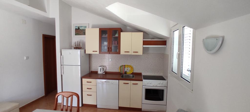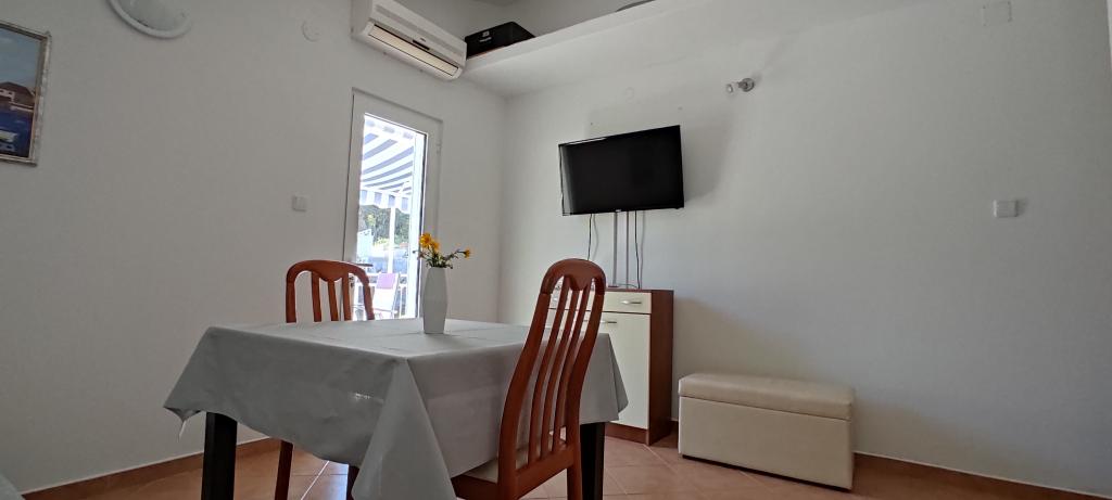 Onze appartementen bevinden zich in Donja Krušica op het eiland Šolta. Eén appartement bevindt zich op de begane grond en het andere op de eerste verdieping van het huis, aan de eerste rij aan zee in een rustige baai. Het dichtstbijzijnde strand ligt direct naast het huis en op 5 minuten lopen ligt het tweede strand, waar u kunt genieten van de kristalheldere zee. Het appartement op de eerste verdieping bestaat uit een slaapkamer, een ingerichte keuken met eethoek, een badkamer en een aangenaam terras. Andere voorzieningen zijn airconditioning, een tv en een wasmachine. Het appartement op de begane grond bestaat ook uit een slaapkamer, een ingerichte keuken met eethoek en een badkamer. Het terras van het appartement op de begane grond biedt uitzicht op zee. Er is ook een tv met voorzieningen zoals Netflix. Het appartement op de begane grond is voorzien van airconditioning en een plafondventilator voor verkoeling.