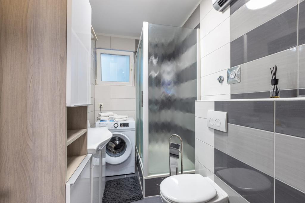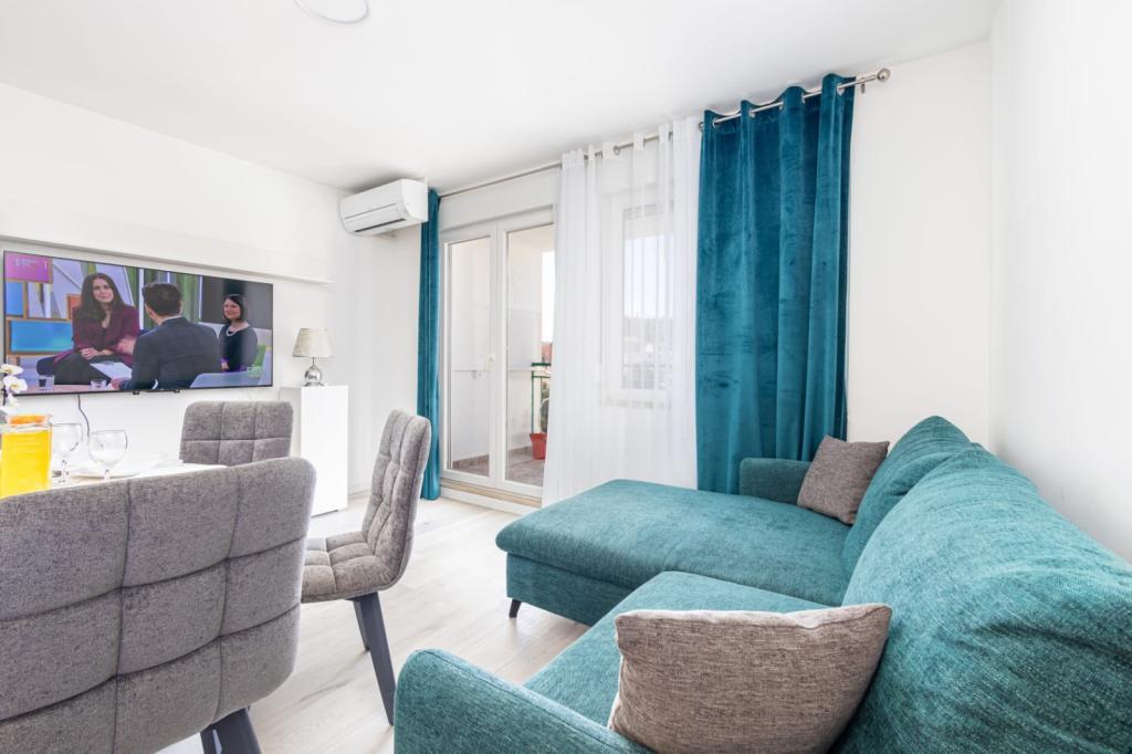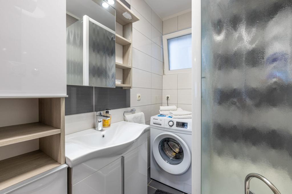Het appartement is gelegen in Split op Pujanka. Het appartement bestaat uit twee kamers, keuken, balkon, parkeerplaats, badkamer. Het strand ligt op 900 meter afstand van Znjan en het zandstrand. Winkels, apotheek, markt, cafés, restaurants en busstation liggen op 50 meter van het appartement. Het centrum van Split ligt op 15 minuten afstand van het appartement. De appartementen zijn van alle gemakken voorzien.
