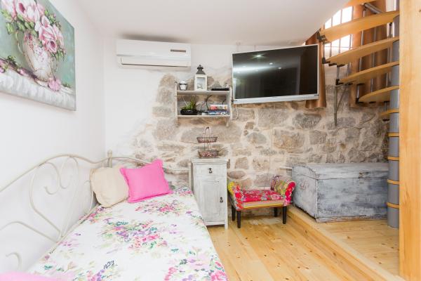 Dama is een klein Dalmatisch huis gelegen in het stadscentrum, op een rustige locatie. Het huis is geschikt voor 3 personen. Het bestaat uit een begane grond met een keuken, een woonkamer en een badkamer, vervolgens een lage zolder met een slaapkamer en een tuin met een bank. De gastheer woont daar niet, maar staat altijd tot uw beschikking. Kom en beleef een onvergetelijke vakantie. Wij hebben geen eigen parkeerplaats! Openbare parkeergelegenheid in de directe omgeving van de woning.