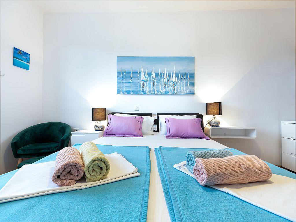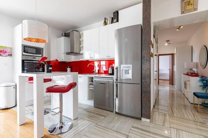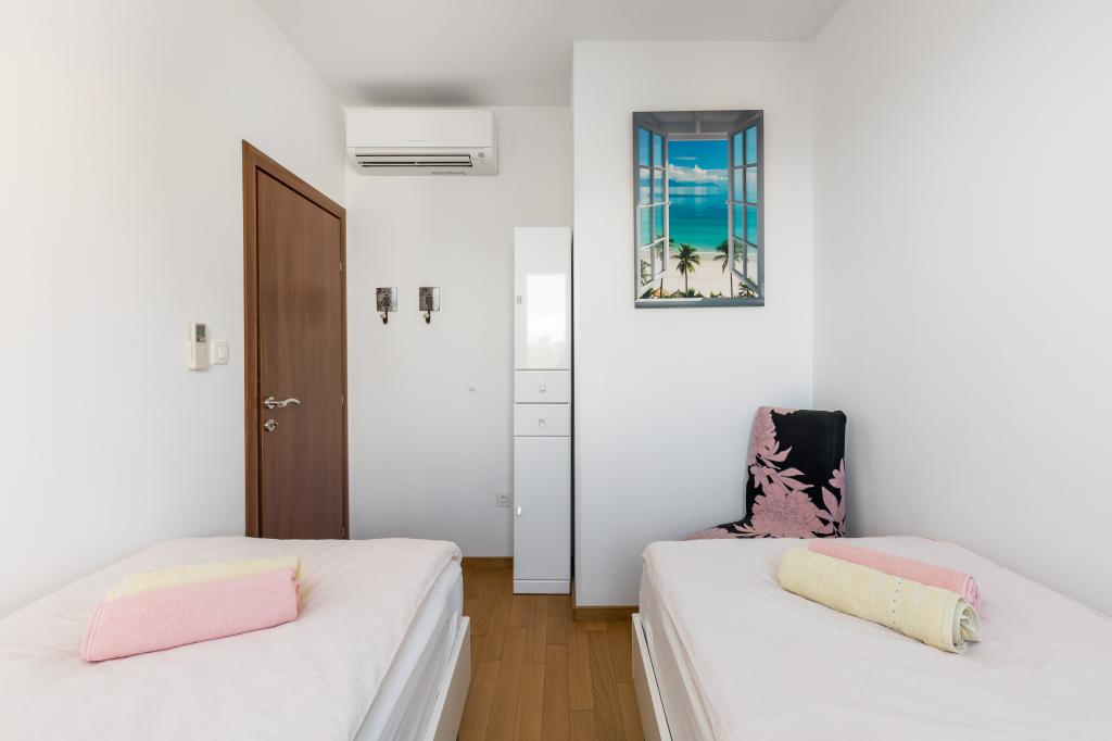 Bačvice, appartement met 2 slaapkamers, 3 airconditioners, terras, parkeerplaats in de garage, lift, 2 minuten naar het strand, 10 minuten lopen naar het centrum. Dit prachtige appartement met twee slaapkamers in het centrum van Split heeft een oppervlakte van 70 m2, een terras, een massagebad in de badkamer en airconditioning in elke kamer. De zee ligt op 50 meter afstand. Deze unieke accommodatie is gunstig gelegen ten opzichte van alle bezienswaardigheden, waardoor u uw bezoek gemakkelijk kunt plannen. Het stadscentrum en het oude Paleis van Diocletianus liggen op 15 minuten loopafstand. We hebben een eigen parkeerplaats in de garage en u kunt met de lift vanuit de garage naar het appartement. Het appartement bevindt zich op de 3e verdieping van een nieuw gebouw. Supermarkt - 300 m, Restaurants - 100 m, Café - 50 m, Boottochten - 500 m, Veerhaven - 200 m, Busstation - 200 m. De sleutels van het appartement en de garage bevinden zich in de sleutelkluis op de begane grond van het gebouw. Na uw reservering ontvangt u de code voor de kluis per e-mail.