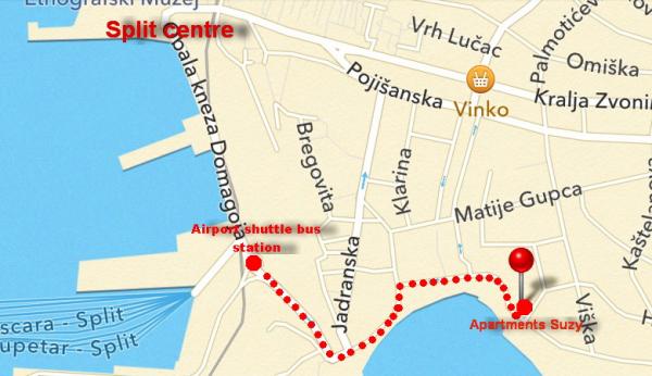 De appartementen liggen op 20 meter van het populaire strand Bačvice. Het is 5 minuten lopen naar de veerhaven, het busstation en het treinstation, en 10 tot 15 minuten lopen naar het centrum van Split. Dichtbij het Firule ziekenhuis, tennisbanen, vele restaurants en bars langs de boulevard. Op aanvraag is er privéparkeergelegenheid beschikbaar. Wij beschikken over één parkeerplaats.