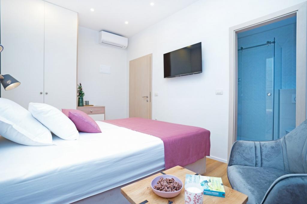 Super schone en moderne kamer met eigen badkamer, net als op de foto's, hotelklas kamer. Het grote tweepersoonsbed is zeer comfortabel. De locatie is geweldig, een vredige en stille straat in de directe omgeving van het paleis van Diocletianus, de Riva en het centrum van de oude stad met restaurants, cafés en diverse clubs, op slechts een paar minuten lopen van alle voorzieningen. Ik raad deze accommodatie aan.