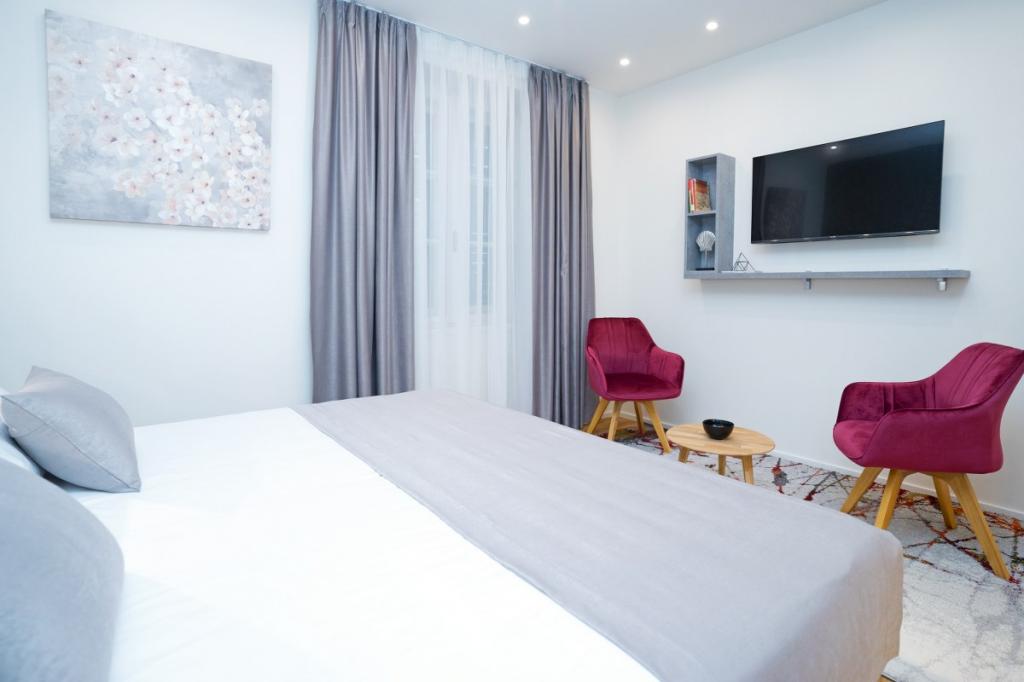 De kamer is prachtig ontworpen, heeft alles wat je nodig hebt, een enorm tweepersoonsbed dat heel, heel comfortabel is, smart-tv, espressomachine, snelle wifi, mooie badkamer met toiletartikelen, föhn. De kamer bevindt zich in een rustige en veilige straat zonder lawaai, op slechts een paar minuten lopen van het centrum van de oude stad, het paleis van Diocletianus, de belangrijkste kustpromenade, restaurants en ander amusement. Als ik weer naar Split kom, zal ik hier blijven.