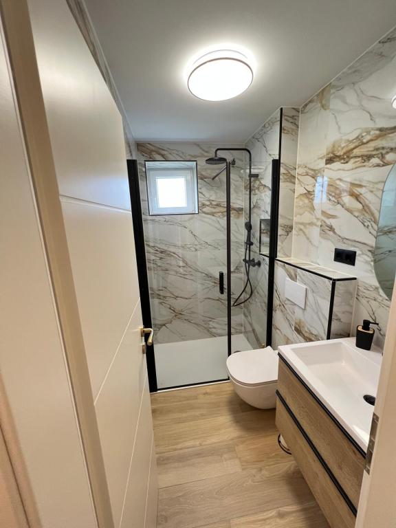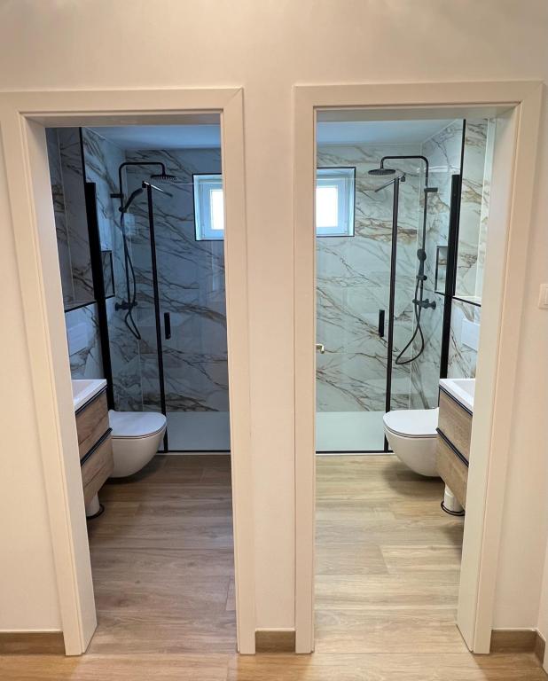 Een prachtig, modern en schoon huis met drie appartementen, dat we huurden voor 17 personen – er was genoeg ruimte. Elk appartement had een eigen vaatwasser en elke slaapkamer had airconditioning. Grote terrassen met grote tafels, perfect voor gezamenlijke maaltijden. Het betonnen strand ligt op slechts 50 meter afstand en het kiezelstrand op ongeveer 400 meter. Sreser is een rustig stadje met weinig toeristen en prachtige, wilde eilanden tegenover het strand. De eigenaar was erg aardig en behulpzaam – hoewel hij ons niet persoonlijk kon ontmoeten, was hij constant in contact via WhatsApp. Ik kan het van harte aanbevelen!