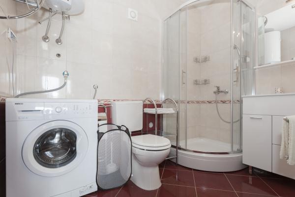 Het appartement was schoon en zoals te zien op de foto's van tevoren. Airconditioning inbegrepen. Bijzonder opmerkelijk was de vele kenmerken van het appartement op borden, glazen, bestek, enz. Het is allemaal in voldoende aantal beschikbaar wat je nodig hebt. Vaatwasser en wasmachine vergemakkelijken het verblijf. Het welkom was bier, speciaal bereid door de wijn van het gastland en de schnapps, goed voorbereid in de koelkast klaar. Er waren twee fietsen beschikbaar voor gebruik, de 3,5 kilometer lange weg naar de promenade naar Vodice lijkt korter. Ik kreeg zelfs zijn scooter aangeboden voor gebruik. Het nabijgelegen strand was perfect voor kinderen omdat het na ongeveer een meter zand in het water had. De eigenaar was erg vriendelijk. Zijn eerlijkheid en behulpzaamheid sloot zijn aandacht af. Het was een erg leuke vakantie die je graag in deze kamers zou willen herhalen. , ,