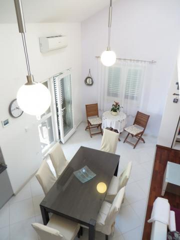 Eigentijds en modern appartement op de eerste verdieping van een gezinswoning in een kleine en rustige plaats Srima. Tweede rij naar de zee, 140 m van het prachtige kiezelstrand (Blauwe Vlag). Het appartement heeft 75 m2 (toilet en badkamer, twee slaapkamers, keuken, eetkamer en woonkamer) galerij met badkamer en toilet en een half overdekt terras van 14 m2. Geschat aantal personen is 6 (kamers 4, galerij 2) Volledig ingericht met meubilair en apparatuur van hoge kwaliteit (satelliet-tv, internet, lcd-tv, radio, vaatwasser en wasmachine, haardroger, magnetron, boiler, 2 airconditioners) zal voldoen gasten die meer willen. Door zijn grootte is het ideaal voor twee gezinnen. Srima ligt in de buurt van de stad Vodice, een beroemd zomerresort met alle nodige voorzieningen voor rust en recreatie en twee nationale parken: NP Kornati en NP Krka.