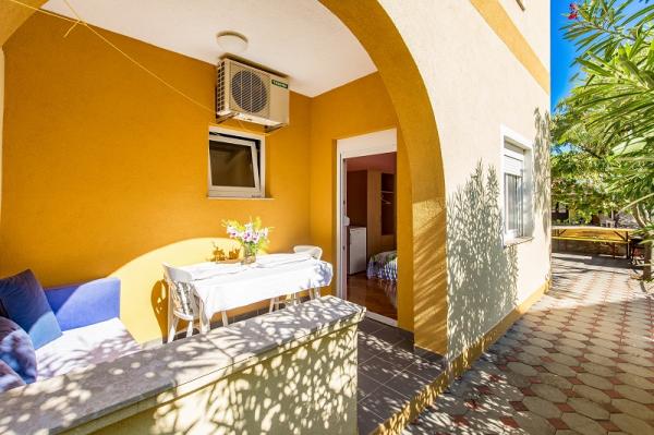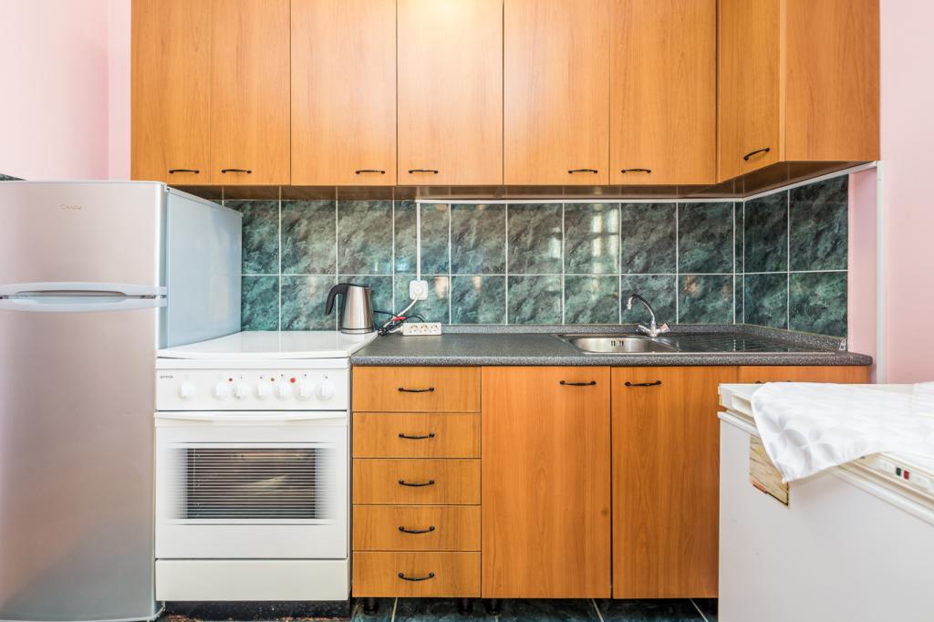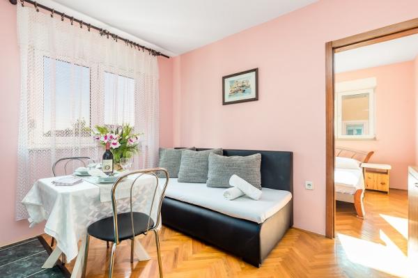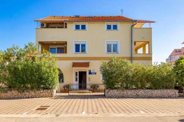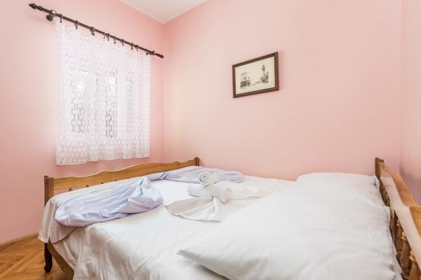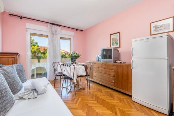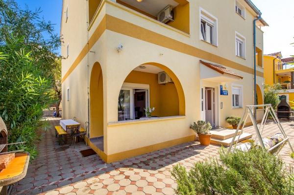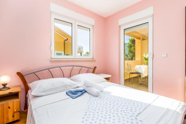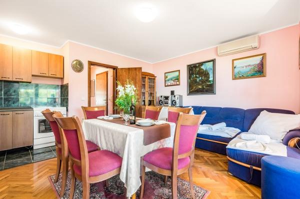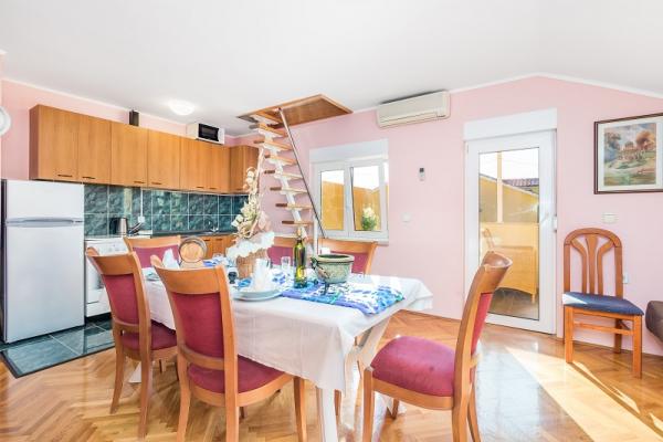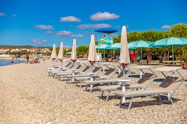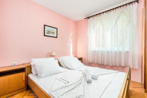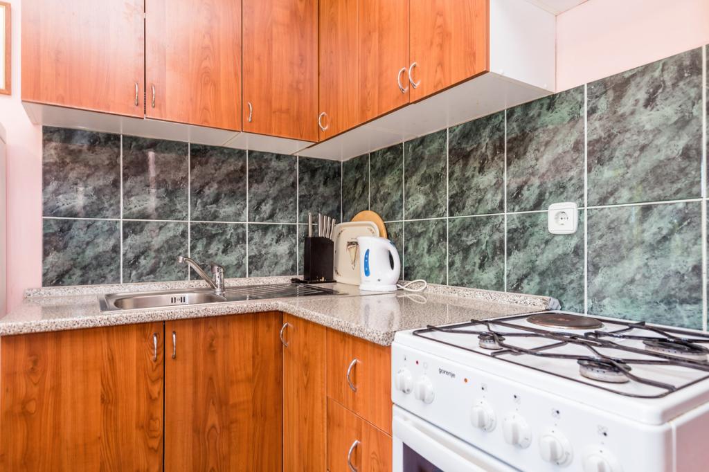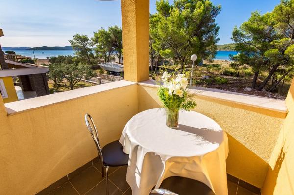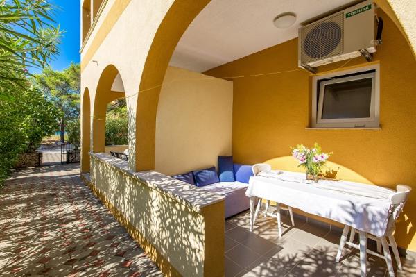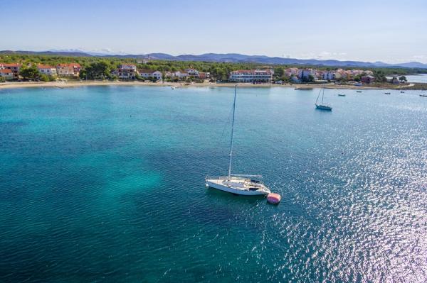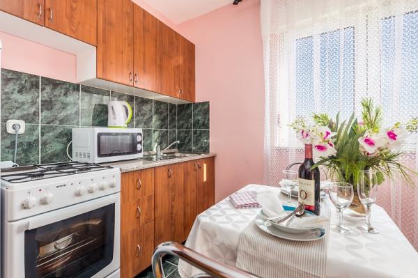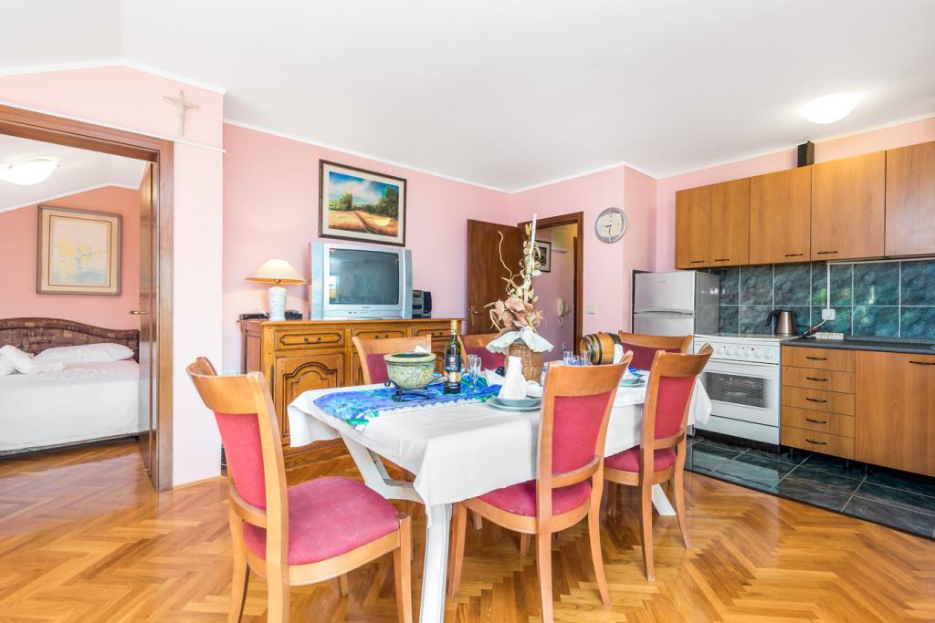 Appartementen in Vodice (Srima) drie sterren, eerste rij naar de zee (50m tot zandstrand), twee en drie slaapkamer appartementen, volledig ingericht (airconditioning, tv, internet WiFi). Elk appartement heeft een keuken, een badkamer en een balkon met uitzicht op zee. Er is ook een buitengrill. .
