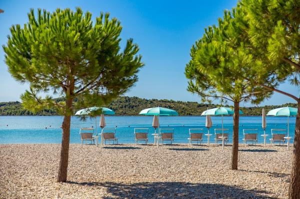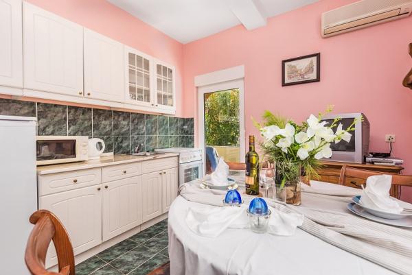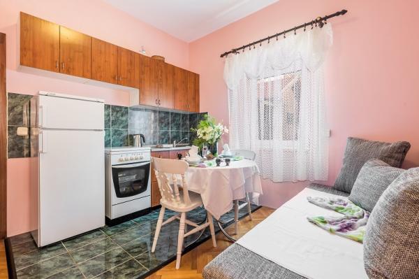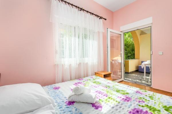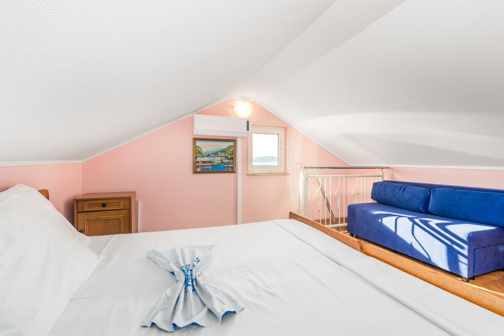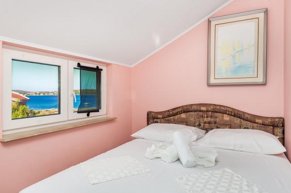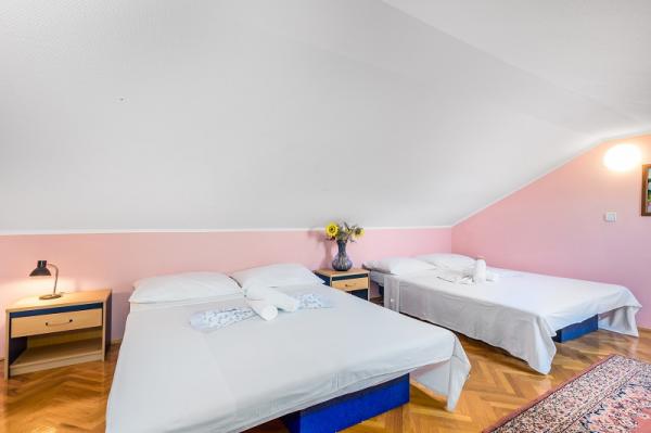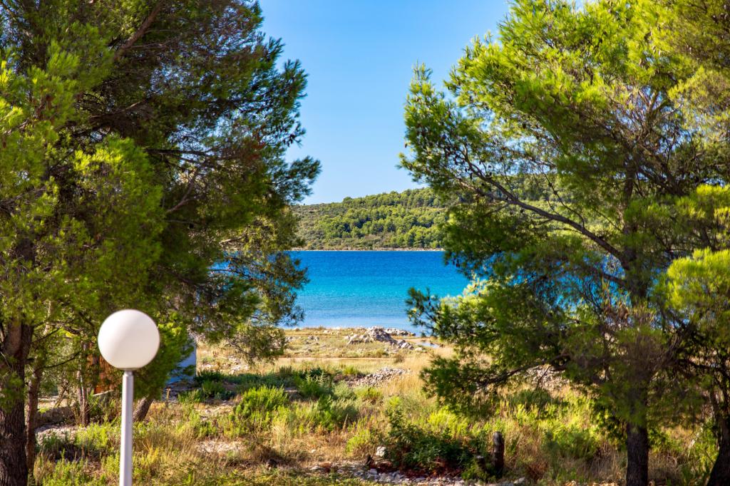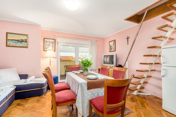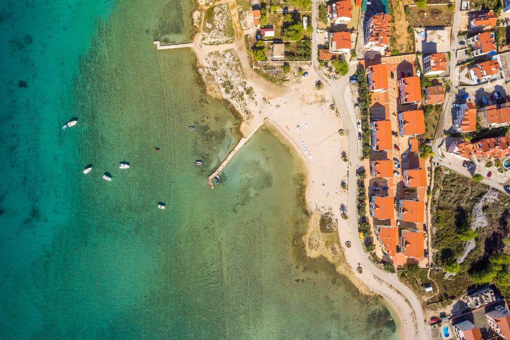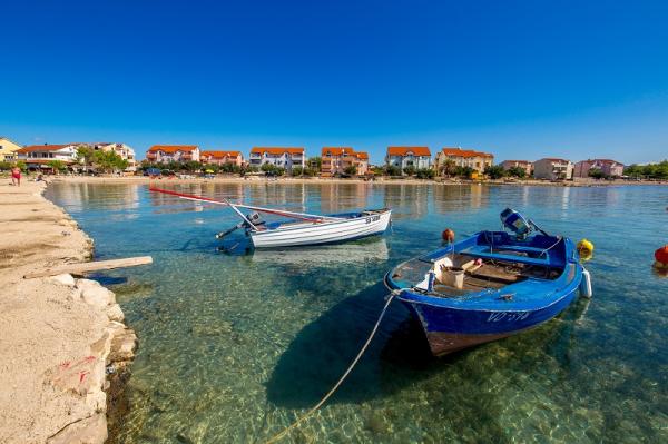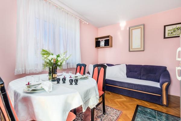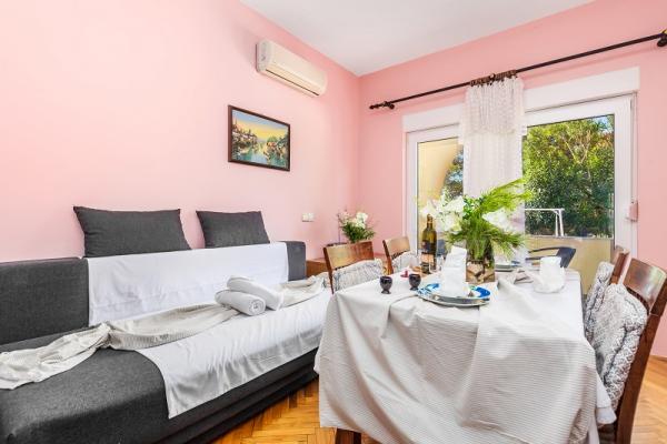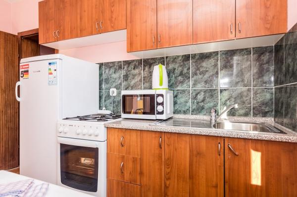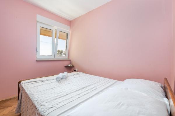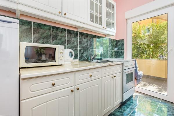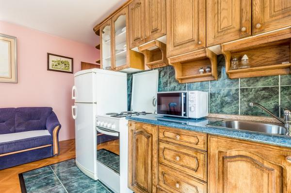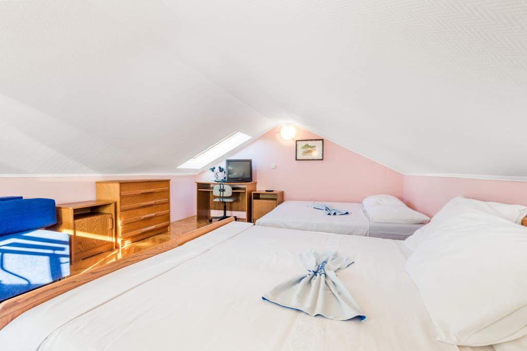 Appartementen in Vodice (Srima) drie sterren, eerste rij naar de zee (50m tot zandstrand), twee en drie slaapkamer appartementen, volledig ingericht (airconditioning, tv, internet WiFi). Elk appartement heeft een keuken, een badkamer en een balkon met uitzicht op zee. Er is ook een buitengrill. .