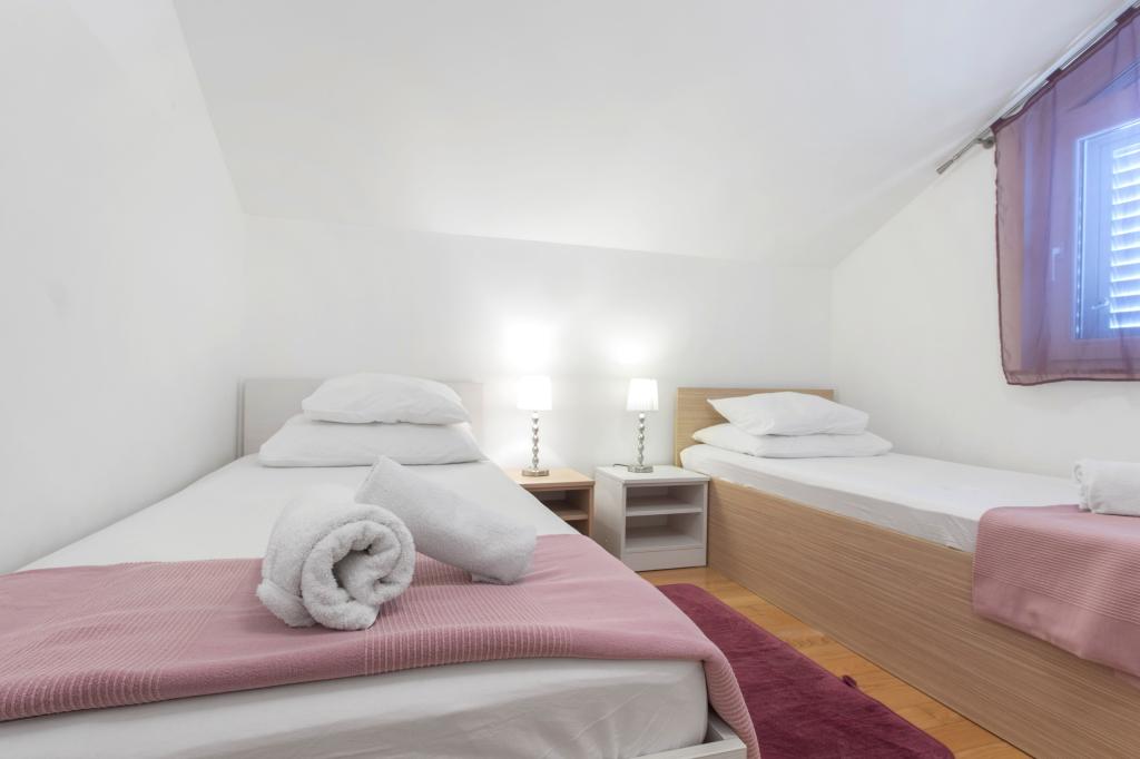 Als u op zoek bent naar een rustige vakantie, weg van hotels en bruisende toeristische bestemmingen, raden wij een vakantie in Srima. Als u op zoek bent naar uit, entertainment of een goede nacht, ga naar Vodice, een beroemde toeristische centrum. Wij kunnen u drie appartementen Rozemarijn, olijfbomen en lavendel uitzicht op zee, een eigen parkeerplaats, barbecue en toegang tot internet te bieden. De appartementen zijn geschikt voor 6 2 personen, inclusief 1 badkamer, toilet, twee terrassen, drie slaapkamers, een grote woonkamer. Het strand ligt op 4 minuten hoda.Nalazi in een rustige omgeving ideaal voor kinderen.