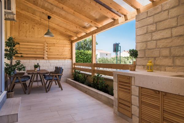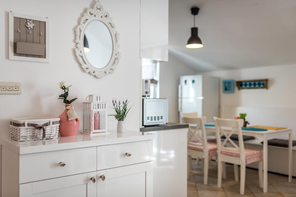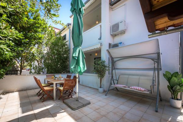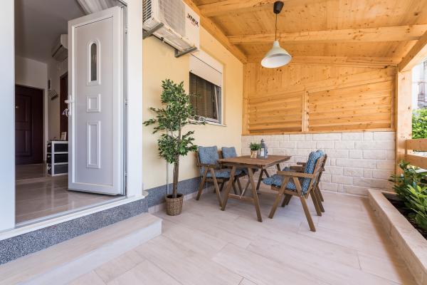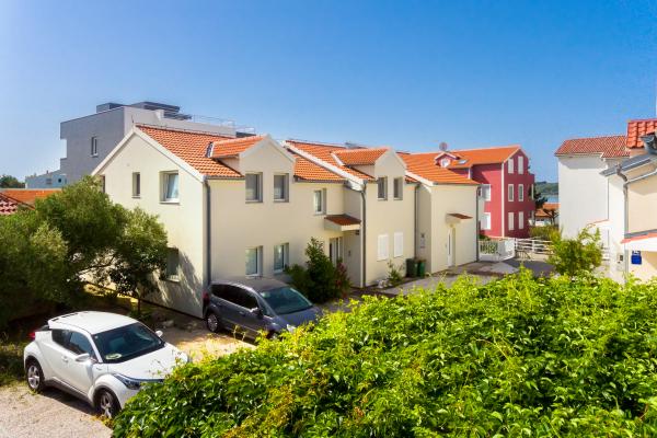 Modern ingerichte appartementen in Srima, vlakbij Vodice, op 100 meter van het prachtig aangelegde strand, winnaar van de Blauwe Vlag. Het complex ligt op 100 meter van het stadscentrum en op 20 minuten lopen langs de boulevard naar Vodice. Appartement Karla bevindt zich op de begane grond en heeft een groot terras en een tuin van 80 m². In de tuin bevindt zich een nieuwe zomerkeuken met een barbecue. Het appartement heeft twee slaapkamers, een woonkamer, een badkamer, een keuken, een loggia en een terras. De keuken is voorzien van alle moderne huishoudelijke apparaten. Appartementen Mara, Ana en Ivan bevinden zich op de eerste verdieping van het complex en hebben een oppervlakte van 50-55 m². Ze zijn ingericht met nieuw meubilair in een shabby-chicstijl en bieden een zeer comfortabel verblijf. Ze bestaan uit twee slaapkamers, een badkamer, een hal, een woonkamer, een keuken en een loggia. De keukens zijn uitgerust met de nieuwste apparatuur en het benodigde servies en bestek. Appartement Jo the Star (35 m²); op de begane grond, heeft een terras van 30m2 met een barbecue en tuinmeubelen