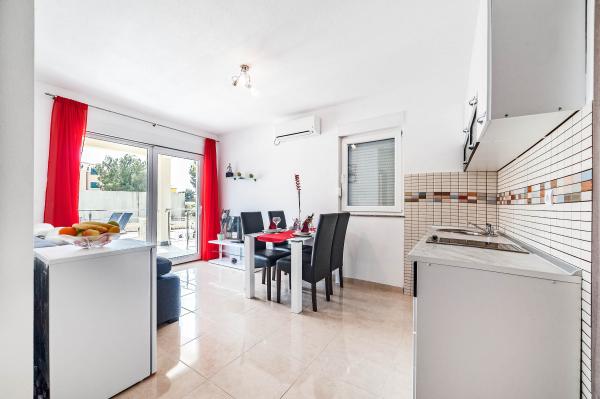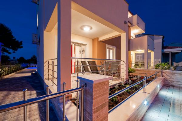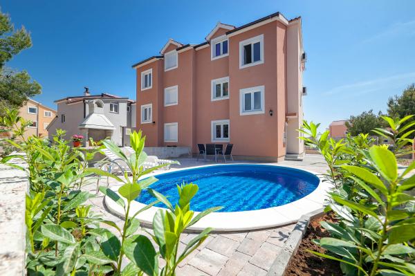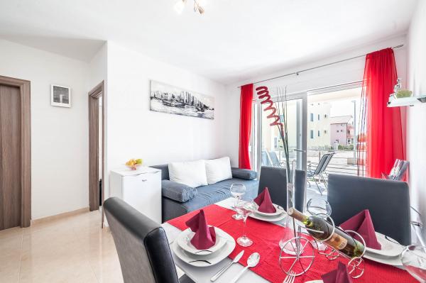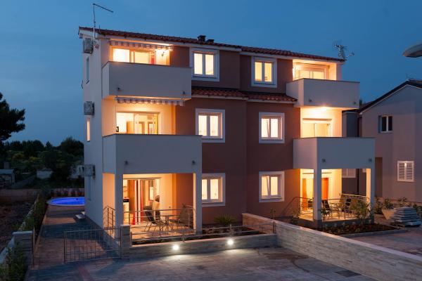 Katarina appartementen zijn gelegen in een eengezinswoning, in een rustige buurt van Srima. De faciliteit is compleet nieuw ingericht met moderne meubels. Het is slechts 100 meter van de zee en de prachtige stranden. Alle appartementen hebben uitzicht op zee. Tot uw beschikking is een openlucht zwembad en een barbecue met een veranda met tafel en stoelen. De appartementen zijn uitgerust met airconditioning, satelliet-tv, een grote lcd-tv.