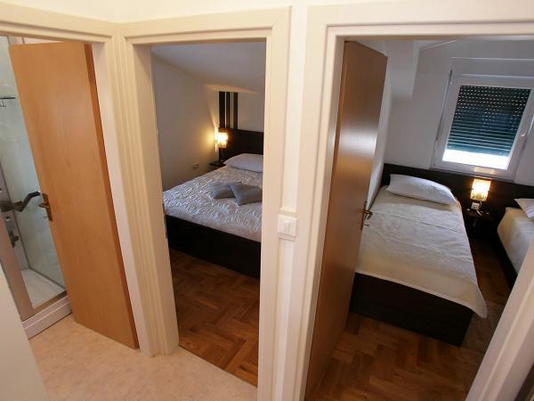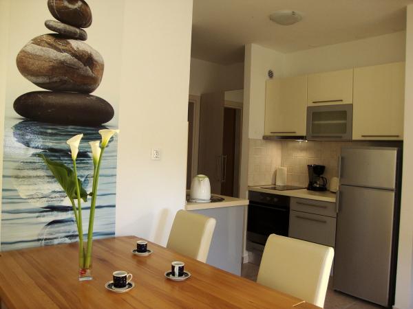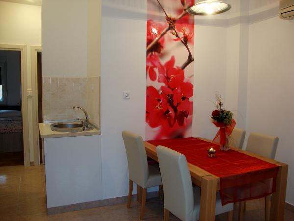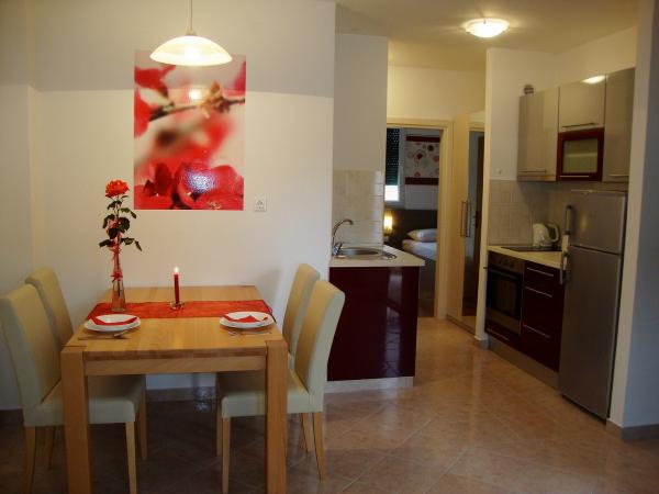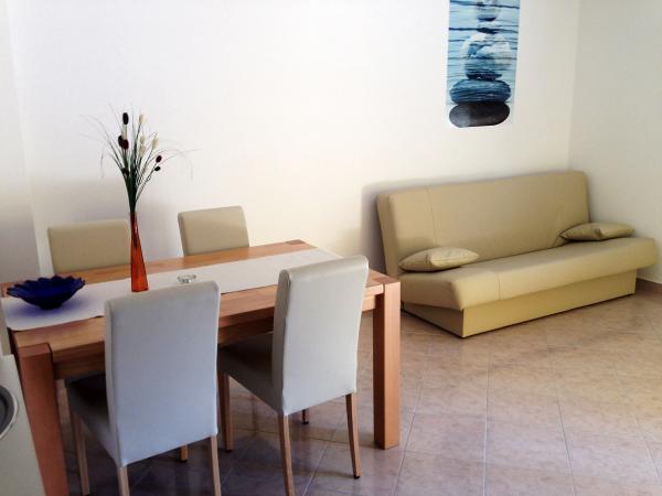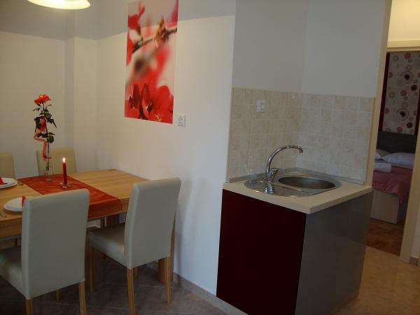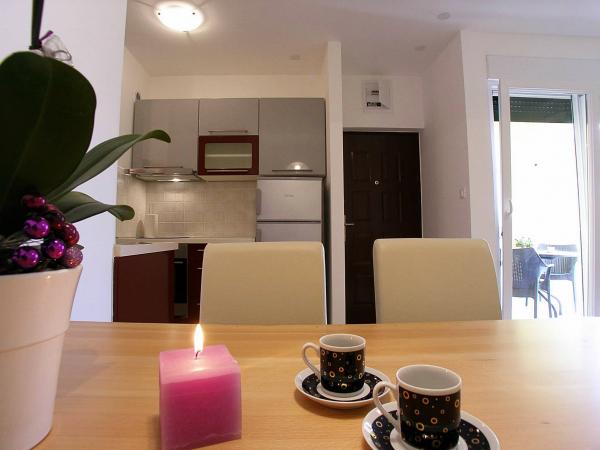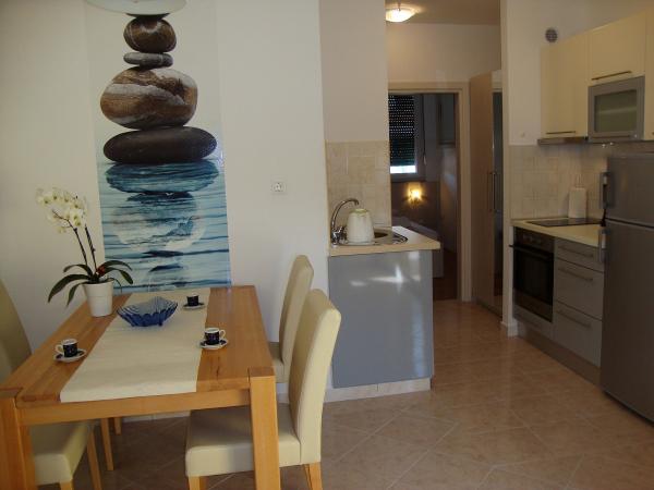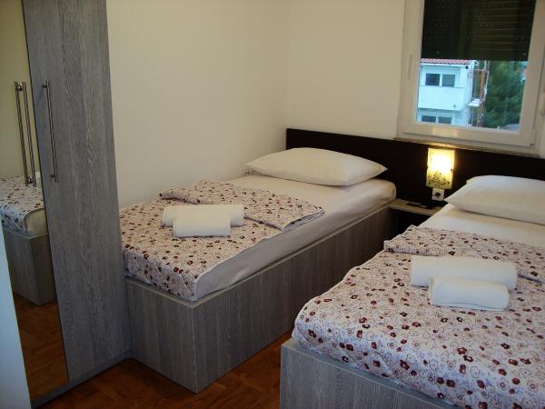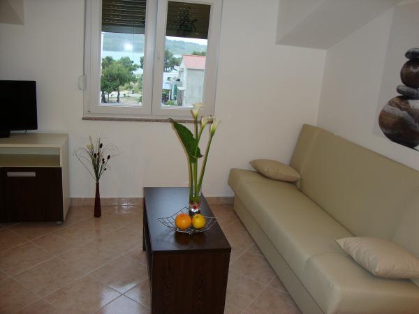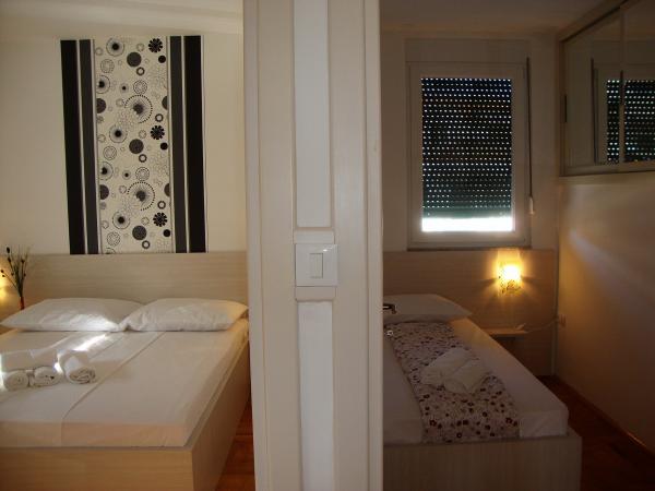 Volledig uitgeruste en moderne appartementen in een rustig gedeelte van Srima (Vodice), gelegen op 100 m van de zee. Ze zijn uitgerust met airconditioning, gratis draadloos internet (Wi-Fi) en satelliet - TV. De badkamer heeft een hydromassage douche en een haardroger. Gasten hebben toegang tot een tuin en gratis barbecue. Alle appartementen hebben een terras met uitzicht op de zee. De faciliteit is gratis parkeergelegenheid. De inrichting is gelegen op een paar minuten lopen naar het centrum.
