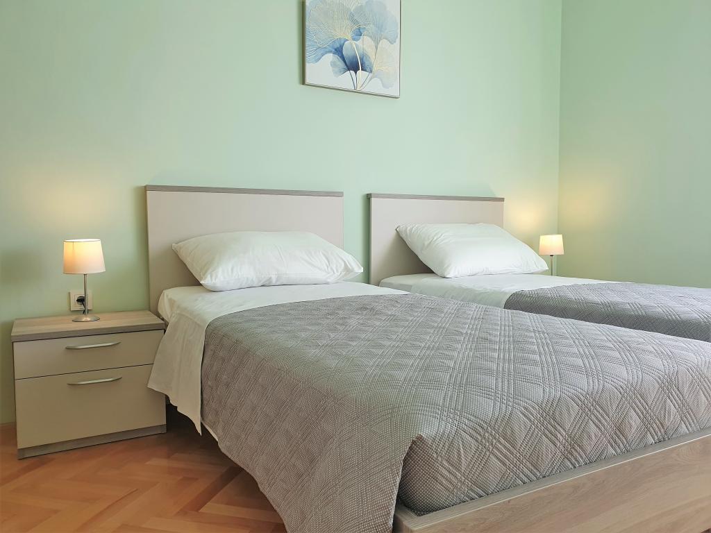 De prijs van het appartement is geldig voor 4 personen per dag. De prijs is inclusief: een parkeerplaats, eindschoonmaak, alle overheadkosten, beddengoed en handdoeken, gebruik van airconditioning, toeristenbelasting. Voor een bed voor de 5e persoon geldt een toeslag van EUR 10 (kinderen onder de 3 jaar zijn gratis). Bij het reserveren wordt een borg van EUR 100 betaald, en de rest wordt betaald bij aankomst in het appartement. Voor verhuur langer dan twee weken buiten het hoogseizoen (juli en augustus) geven wij een extra korting op de vermelde prijzen! We verwachten de aankomst van de gast na 14:00 uur en vertrek tot 09:00 uur.