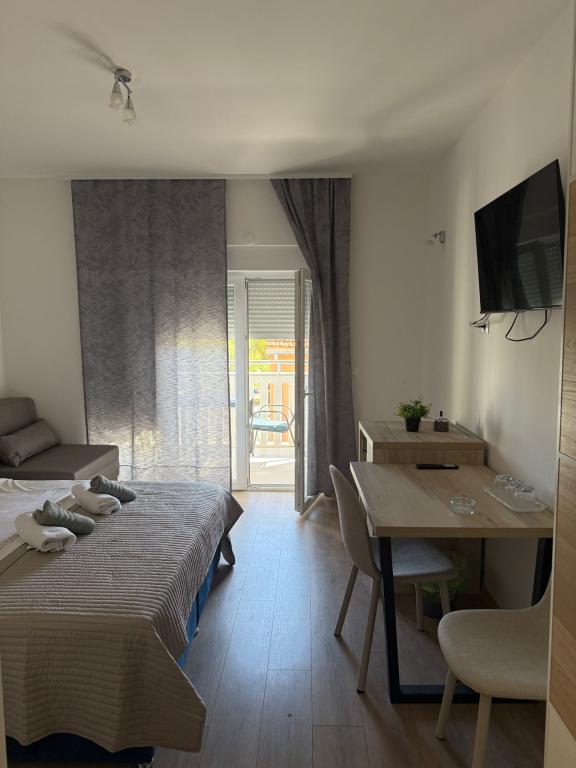 Onlangs gerenoveerde accommodatie, direct aan zee, in het stadje Srima met een zand- en kiezelstrand. Vlakbij de accommodatie vindt u een bakker, winkel en restaurant op 200 meter lopen en Vodice op 1 km langs de boulevard. Er zijn tweepersoonskamers met een extra bed beschikbaar, ideaal voor individuele reizigers, stellen en zakenreizigers. Het aanbod omvat een studio-appartement met een kitchenette en appartementen met een aparte slaapkamer. De accommodaties bevinden zich op de eerste en derde verdieping van het gebouw. Er is een lift aanwezig. Elke kamer is een aparte accommodatie.