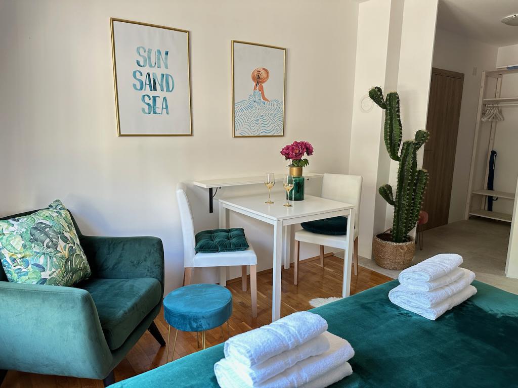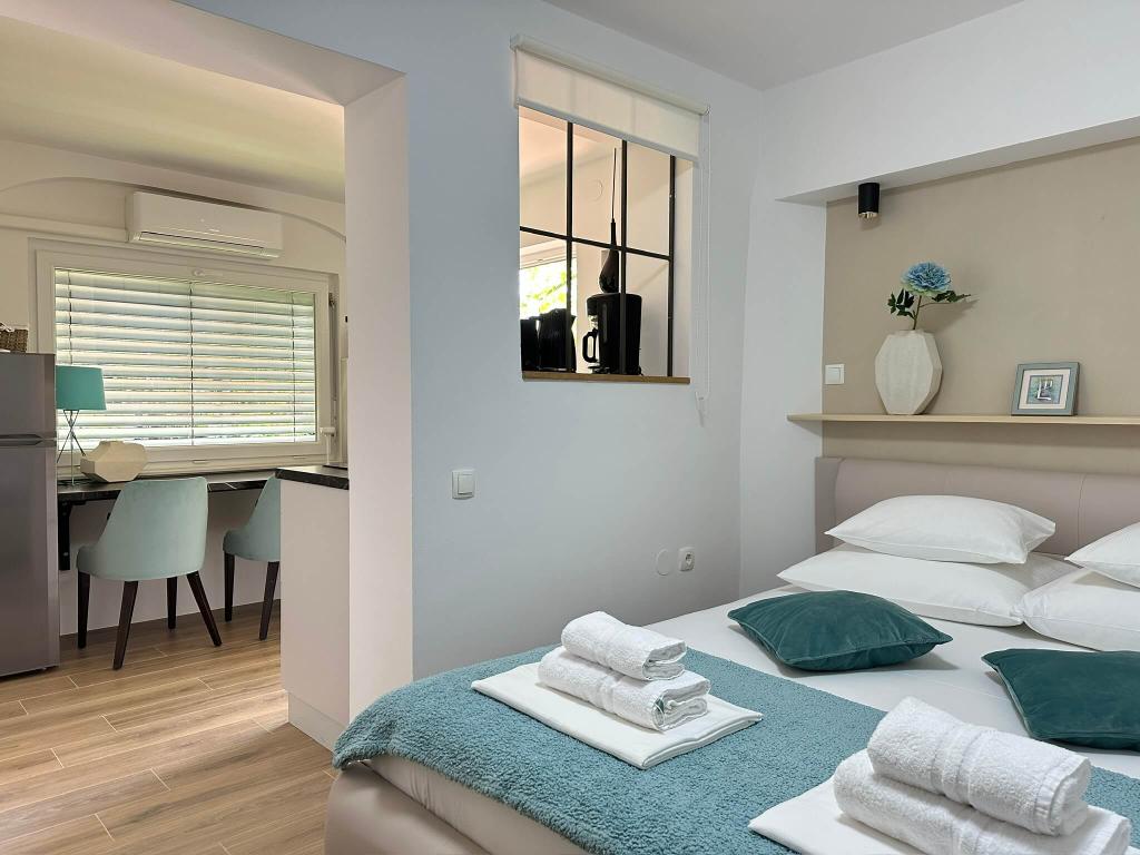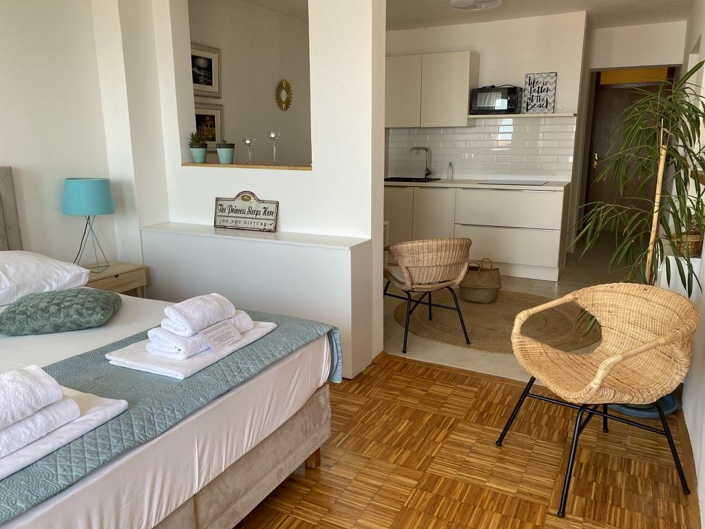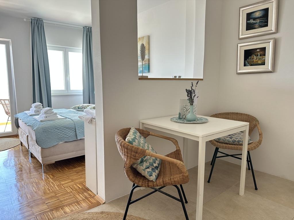 Residence wordt omgeven door groene zonneschijn en ligt in het oude Baska, op 150 meter van de kust. Hoewel het huis in het hart van het oude dorp ligt, ligt het op slechts een steenworp afstand van het strand. U kunt kiezen uit meerdere appartementen met een capaciteit van 2 tot 5 personen. Elk appartement heeft een eigen terras met zeezicht, waar u kunt genieten van lange zomeravonden in het gezelschap van een vriend of familie. We hebben gezorgd voor uw internettoegang, dekens en beddengoed. Barbecue-liefhebbers hebben barbecuefaciliteiten en alle nodige extra's. Voor uw comfort compleet heeft elk appartement zijn eigen beveiligde parkeerplaats. In onze appartementen kunt u genieten van een ontspannen sfeer en verdiende rust, of kiezen voor actieve vakanties, zwemmen en fietsen. We wensen u de goedheid en laten uw droomvakantie toe.