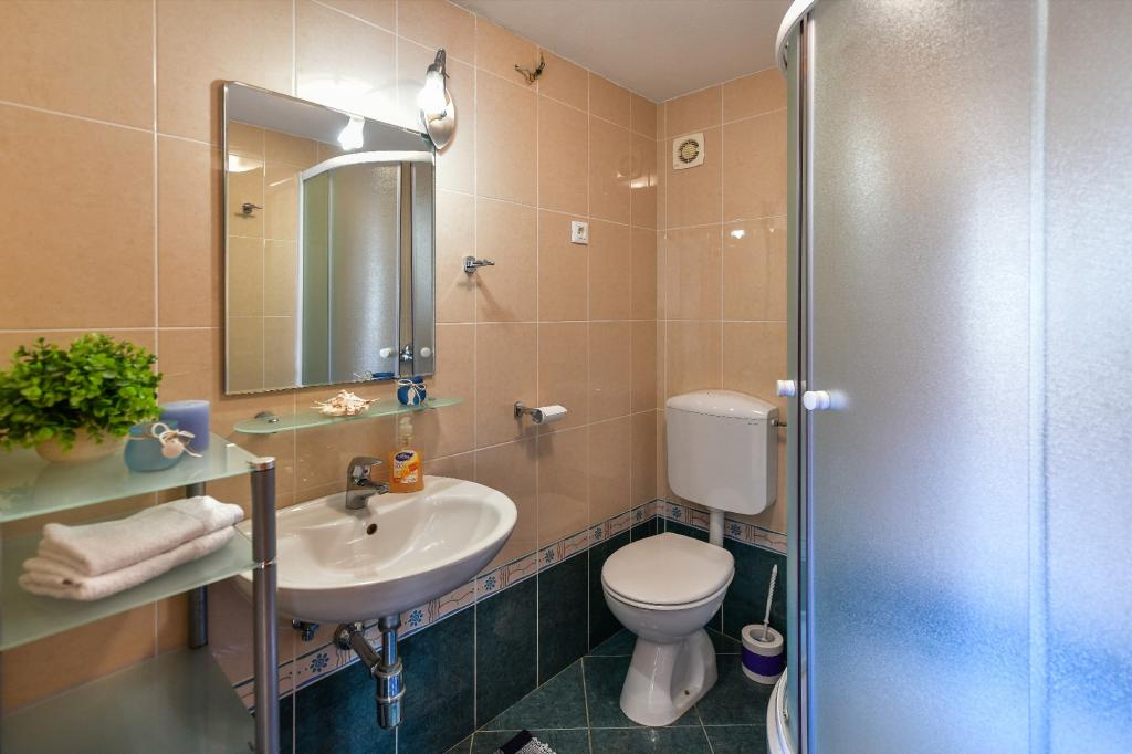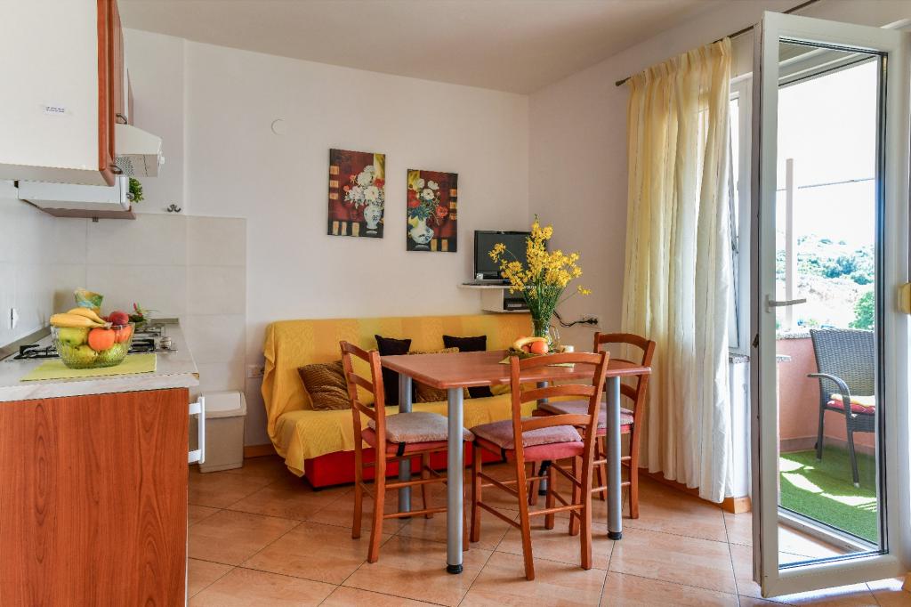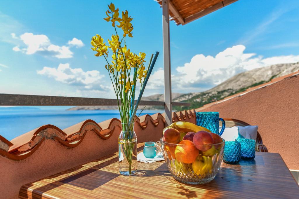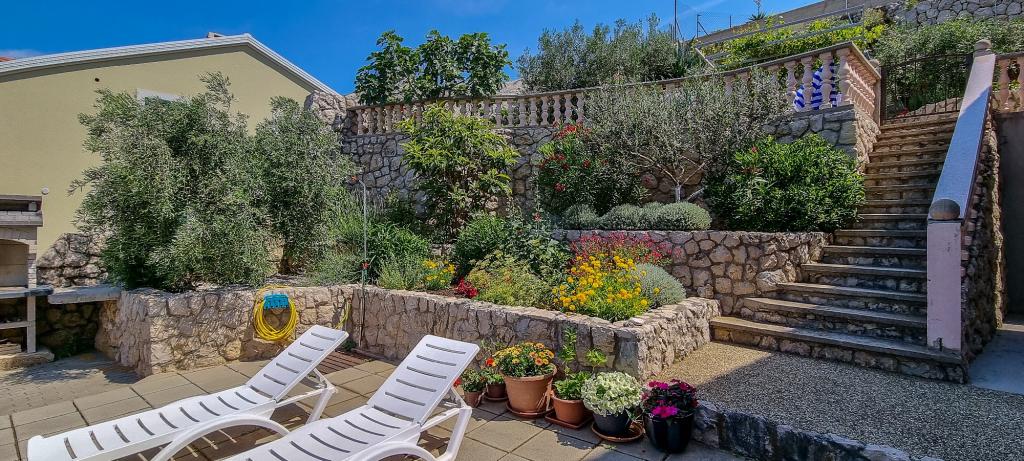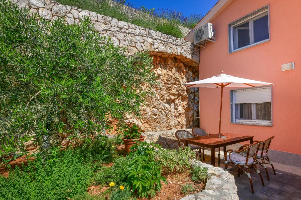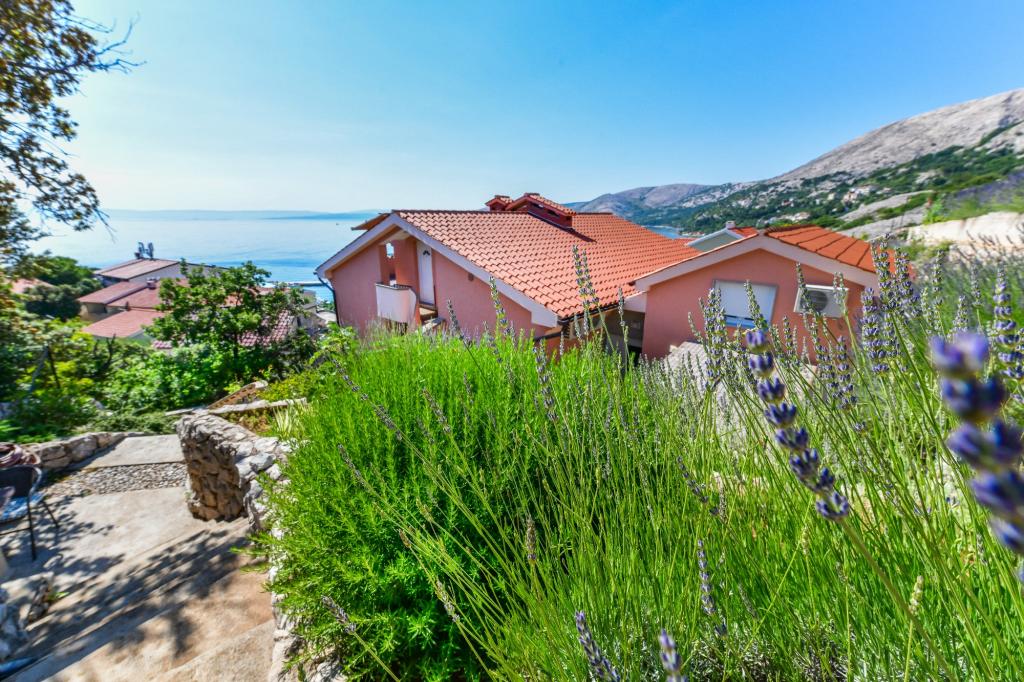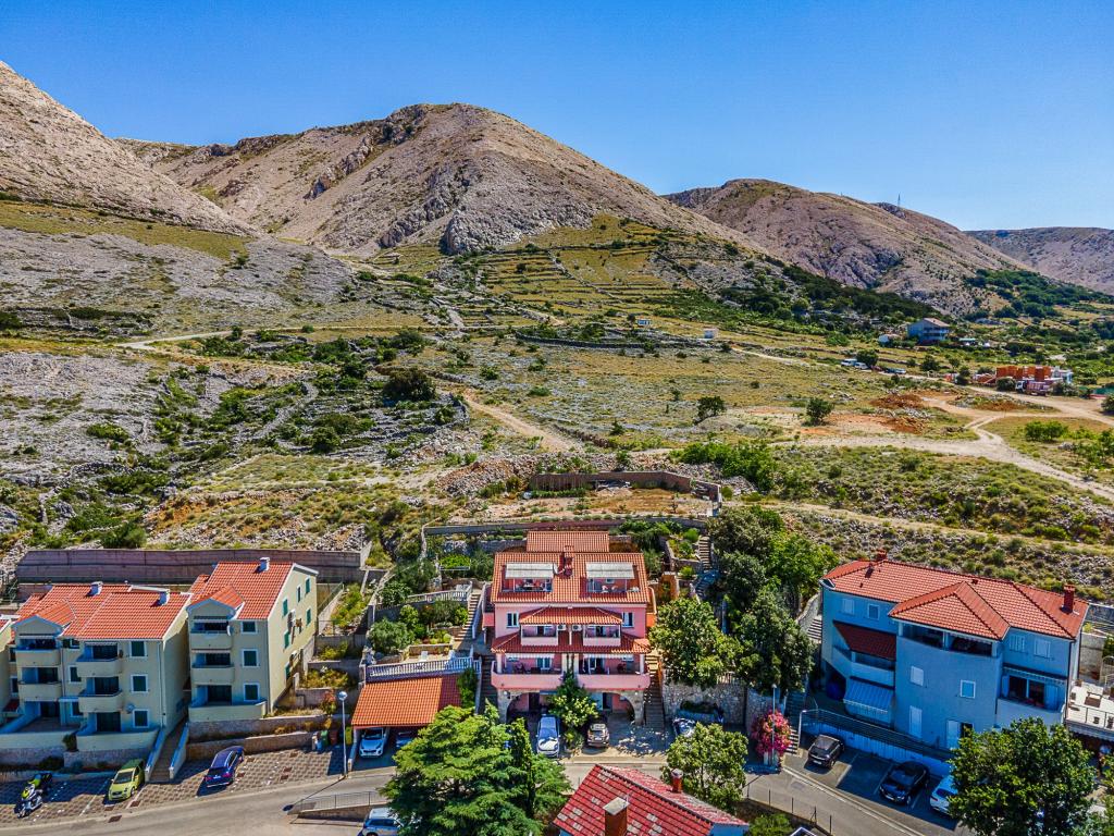 Old Baška is een kleine rustige plaats op het uiterste zuidelijke deel van het eiland Krk. De faciliteit bevindt zich aan het einde van de site - aan het einde van de asfaltweg. De tuin is mooi ingericht met terrassen met barbecue, douches en kleine groene zones - tuinen. De afstand tot het zand - kiezelstrand is 100 meter. De ligplaats in de kleine haven ligt op 100 meter afstand van de accommodatie. Het centrum ligt op 10 minuten lopen. Er zijn 4 restaurants in de buurt. Afstand tot het eerste restaurant ligt op 50 meter afstand. De faciliteit is nieuw en de appartementen zijn modern uitgerust. De binnenplaats heeft 8 parkeerplaatsen. (3 parkeerplaatsen onder het dak, andere niet overdekt)