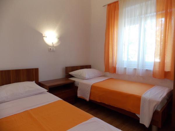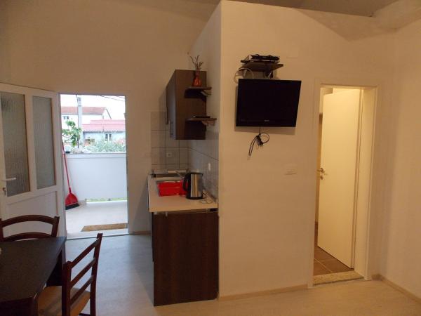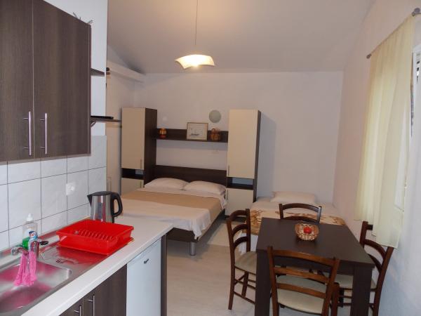 volledig ingerichte appartementen in een rustige buurt van Stari Grad 150m. van de zee. rond het gebouw is een grote tuin met outdoor grill. geschikt voor grotere gezinnen met kinderen. kleine appartement is een apart gebouw geschikt voor een gezin stacaravan is gelegen 10metara van de zee en zandstranden stacaravan heeft twee slaapkamers en naast de keuken wc badkamer en een groot terras